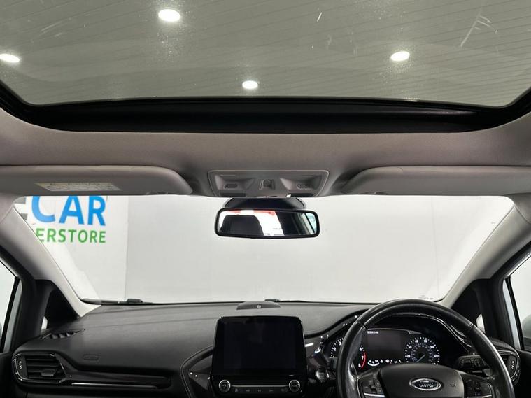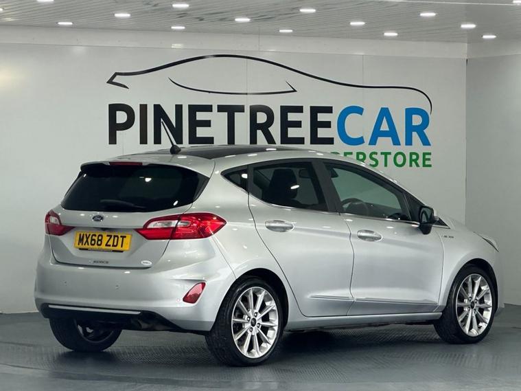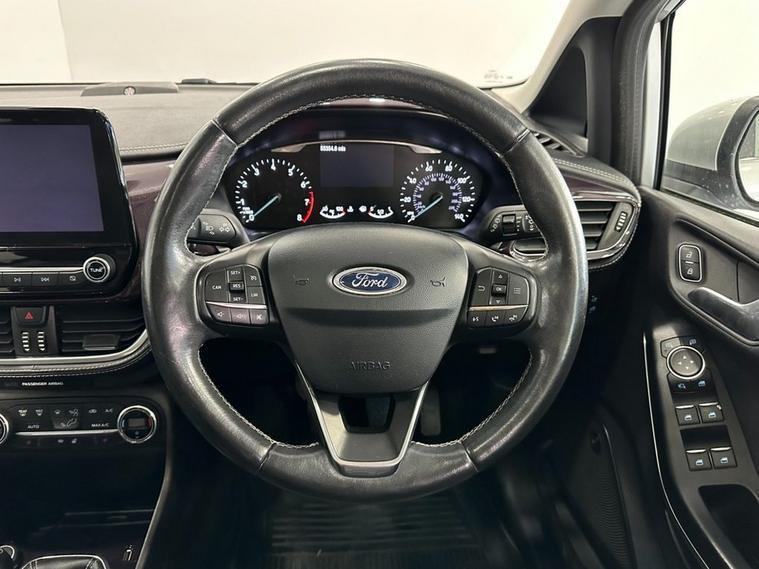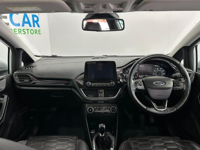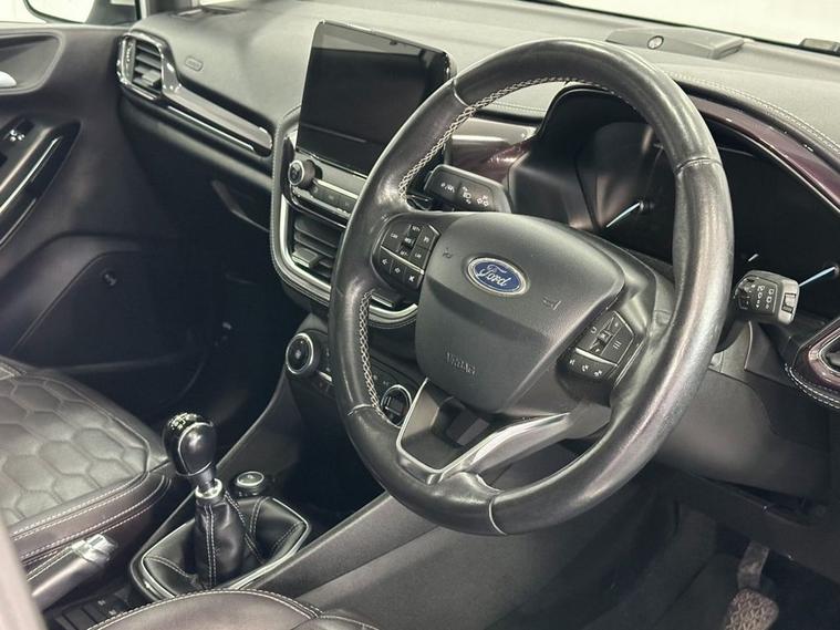 This 2018 Ford Fiesta T Vignale offers a refined driving experience with its premium Vignale trim. Powered by an efficient 1.0L petrol engine, this Euro 6 compliant model boasts low CO2 emissions, making it an environmentally conscious choice. Notable features include the NCAP Pack for enhanced safety, automatic headlights that adjust to conditions, and an opening panorama roof that floods the cabin with natural light. Comfort is further elevated by a heated steering wheel and heated driver and passenger seats, ensuring a pleasant journey in all weather. The Ford Fiesta T Vignale stands out with its impressive acceleration, reaching 0-60mph in just 10.0 seconds, demonstrating its responsive performance. These highlights, such as the advanced lighting systems and the panoramic roof, indicate how this Fiesta offers a superior level of comfort and convenience compared to other vehicles in its class. Its combination of sophisticated features and efficient engineering makes it a compelling option for those seeking a well equipped and enjoyable compact car.
