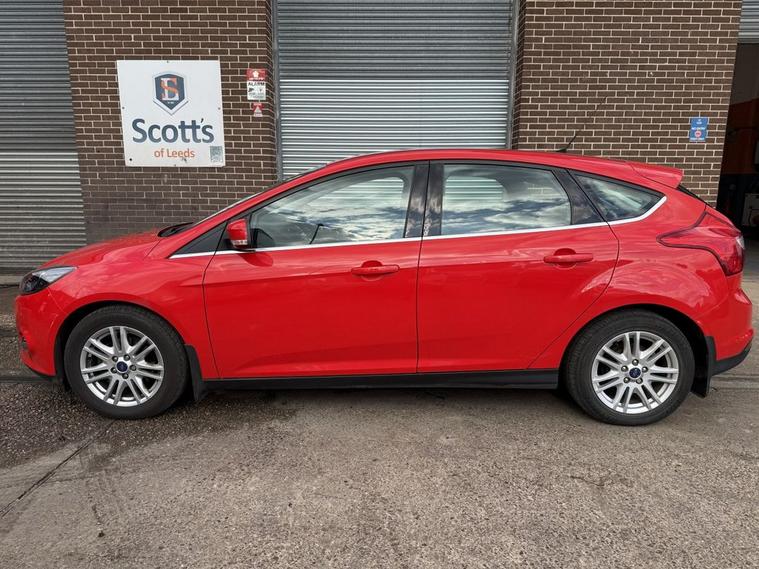 THIS GEM HAS JUST ARRIVED AWAITING VALET, FRESH PHOTOS TO FOLLOW. Scotts of Leeds Car Sales are pleased to offer this FORD FOCUS 1.0T EcoBoost Titanium Hatchback 5 Door Petrol Manual in Red. The car is in good condition throughout, in a lovely colour combination and a great specification including Bluetooth, Cruise control, DAB digital radio, Parking sensors, USB point, Aux point, Automatic lights, Voice command, Electric folding mirrors, Electric windows, Cd player, Drivers armrest, 6 speed gearbox, Isofix, Alloy wheels and much much more. The car will be supplied with an up to date service record including 8 services having just been serviced in our Workshop, an MOT until October 2026 and 2 Keys ready to drive away. £35 Road Tax and great MPG. A guaranteed 12 Months MOT can be added for an extra £100. DISCLAIMER: The above specification is true and correct. Any other specification listed elsewhere can sometimes be incorrect. Please check with Sales Executive to clarify this if needed prior to purchase.