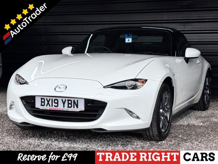 JUST ARRIVED & READY TO DRIVE AWAY! 2019/19 Mazda MX-5 1.5 SKYACTIV-G SE+ finished in Arctic White. We are pleased to offer this lovely 2 door sports convertible. This is the highly desirable and economical 1.5 litre model with a 6 speed manual transmission that offers 130 BHP and over 45 MPG. It has covered just 46, 955 miles with service history (6 services) and drives as you would expect. Just serviced upon arrival. MOT until 28th September 2026 with no advisories. The car is ready to drive away. We will also include a complimentary 12 month AA breakdown cover. Two owners from new, the last owner has had the car since 2021. Euro 6 status - ULEZ compliant. A superb low mileage example with the sought-after SE+ specification. Key features include; A/C, USB, AUX, 16 gloss grey alloy wheels, keyless start, bluetooth connectivity, LED headlights and a multi-function steering wheel. Advertised below the AutoTrader RRP. Please let us know if you would like any further information or a video sent via WhatsApp. Please be aware many of our cars sell before the photos go live so please call or reserve to avoid any disappointment.