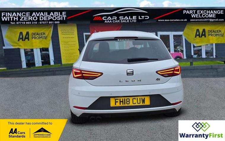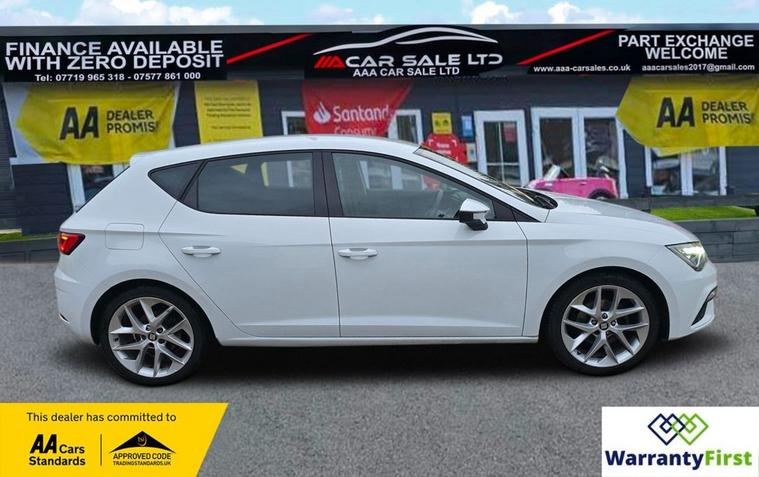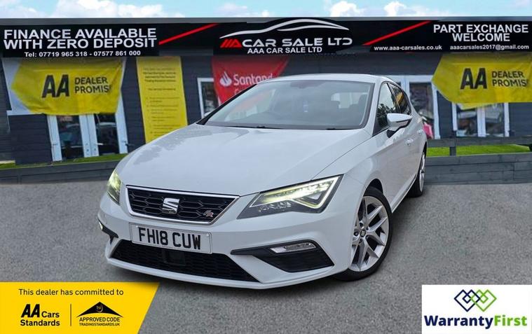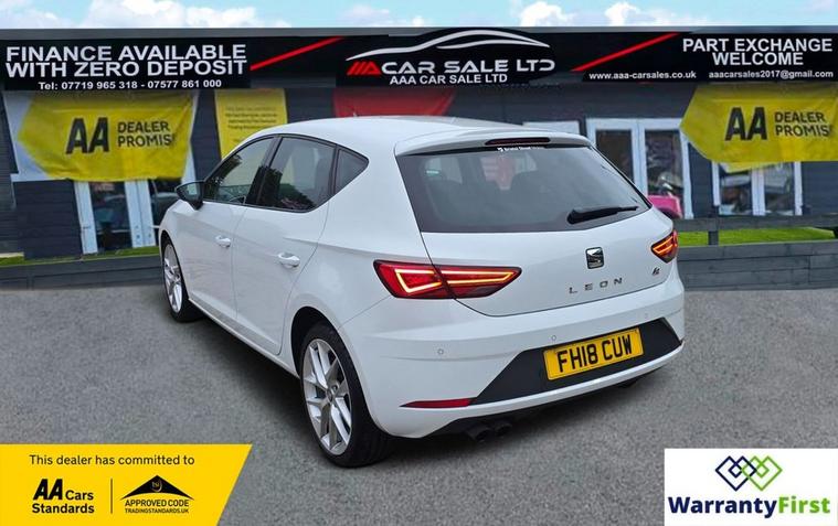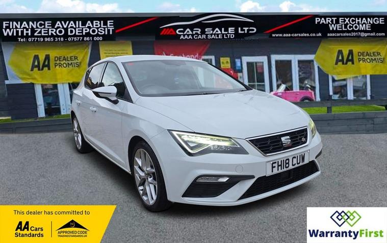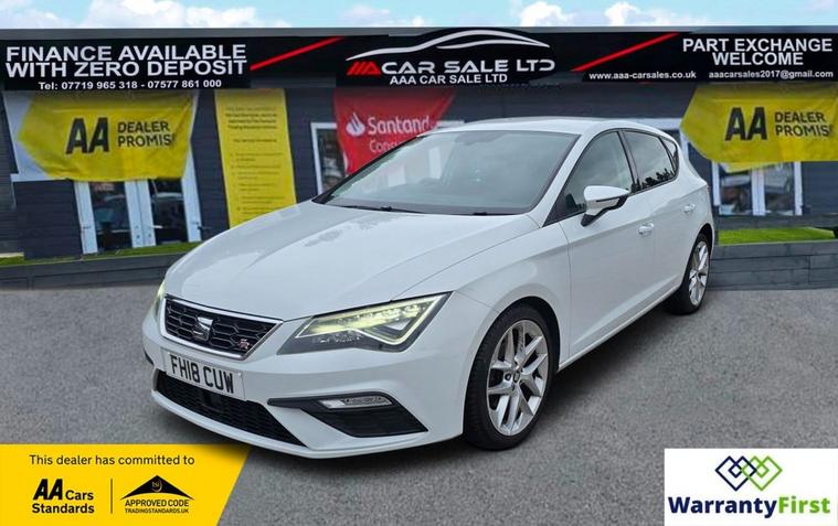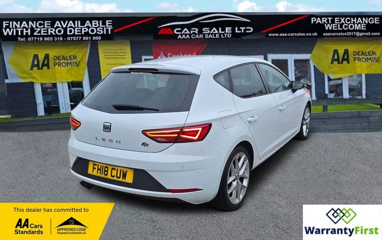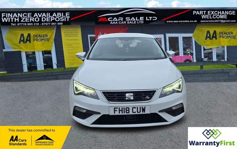 **AAA CAR SALES DARLINGTON LTD HAVE THE PLEASURE TO PRESENT THIS SEAT LEON 1.4 TSI FR Technology Hatchback 5dr Petrol Manual Euro 6 (s/s) (125 ps) IN SPECIAL SOLID WHITE PAINTWORK..SERVICE HISTORY = 8K, 20K AND A SERVICE BY OUR TEAM AT 74K....2 KEYS +12 MONTHS AA COVER, 2 KEYS, ALL OUR CARS GO THROUGH 72 POINT INSPECTION, ALL OF OUR CARS COME WITH 12 MONTHS AA BREAKDOWN COVER, FRESH MOT WITHOUT ADVISORIES, INTERIM SERVICE ** HPI CHECKED VIA EXPERIAN, 3 MONTHS WARRANTY WITH THE OPTION TO UPGRADE **AUTOTRADER CUSTOMER SERVICE AWARD 2019, 2020, 2021, 2022, 2023 & 2024 YEAR ON YEAR***, WE ARE OPEN 7 DAYS A WEEK FOR YOUR CONVIENIENCE, CALL 01325950841 OR EMAIL US AT hello dealer's website or visit our website dealer's website CAN BUY WITH FULL CONFIDENCE FROM AAA CARS CHECK OUR AUTOTRADER REVIEWS FOR FULL PEACE OF MIND,