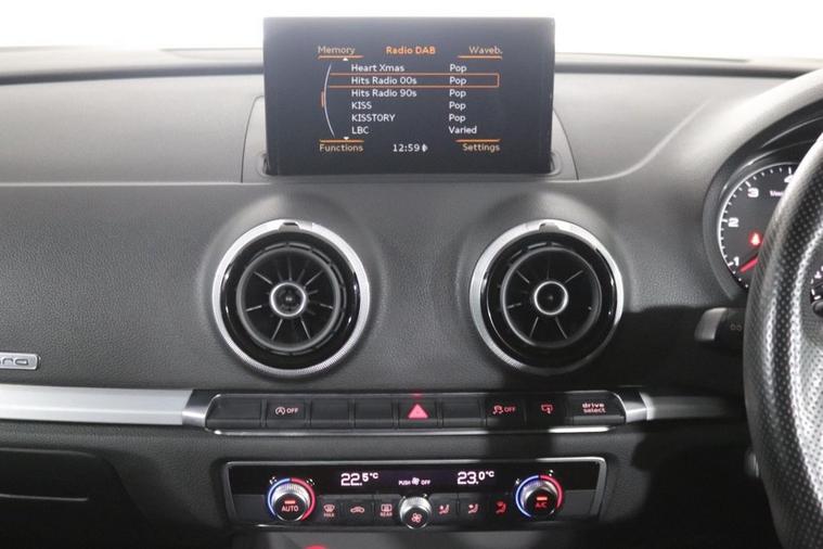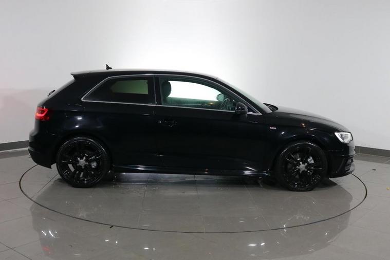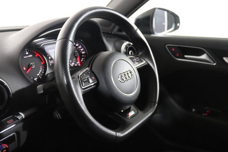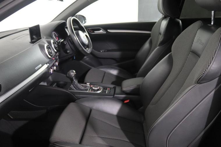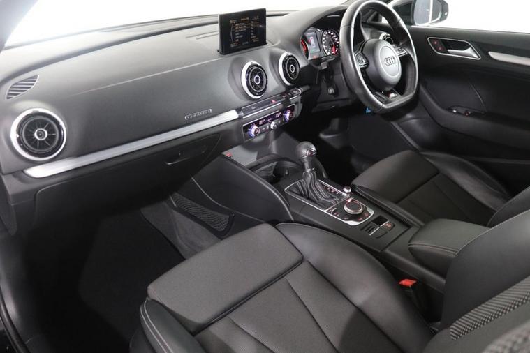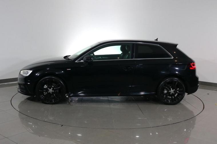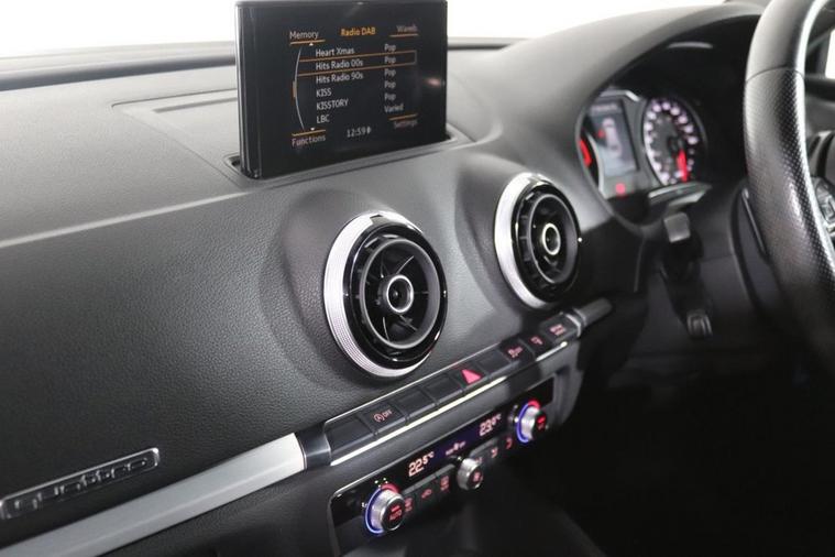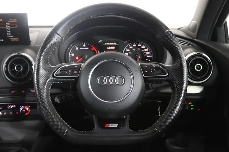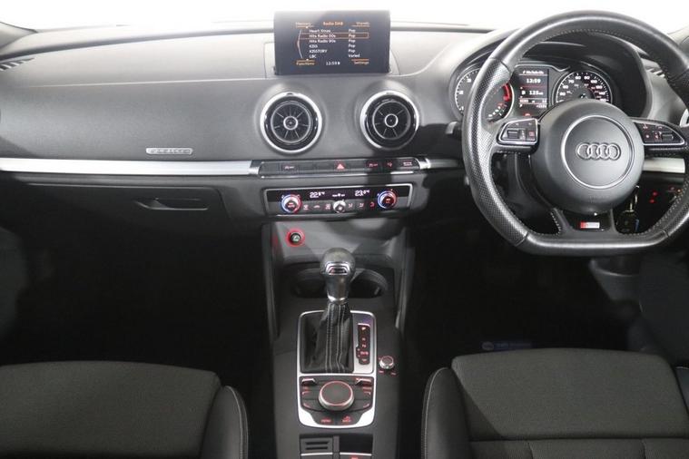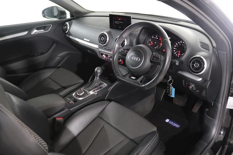 This well maintained Euro 6 4X4 AUTOMATIC Audi A3 S Line S Tronic Quattro finished in Brilliant Black looks fantastic complemented by 18 inch Gloss Black Alloy Wheels, S Line Body Styling and LED Running Lights. Find your way with integrated SATELLITE NAVIGATION with LCD Pop-Up Display. Park in ease with REAR PARKING SENSORS. Keep connected with BLUETOOTH phone system with USB port. Listen to your music through DAB Digital Radio. Comfortable to drive with Dual-Zone CLIMATE CONTROLLED AIR CONDITIONING and CRUISE CONTROL. Sit in luxury with 1/2 LEATHER Upholstery with S Line Embossed Sports Seats. Well equipped with Auto BI-XENON Headlights and Rain-Activated Wipers. Also fitted with Audi Drive Select, Multifunctional Sports Flat Bottomed Paddle Shift Steering Wheel, ISOFIX seats, Immobiliser, Alarm and Remote Door Locking with 2 x keys. Buy in confidence with JUST 1 OWNER + Demo and SERVICE HISTORY with 6 x Documented Services.