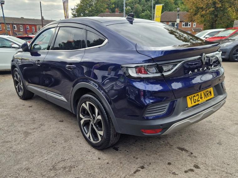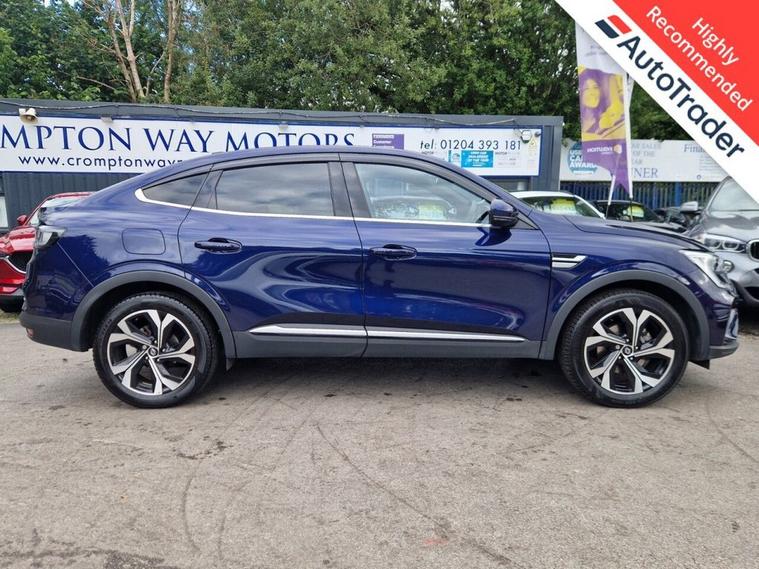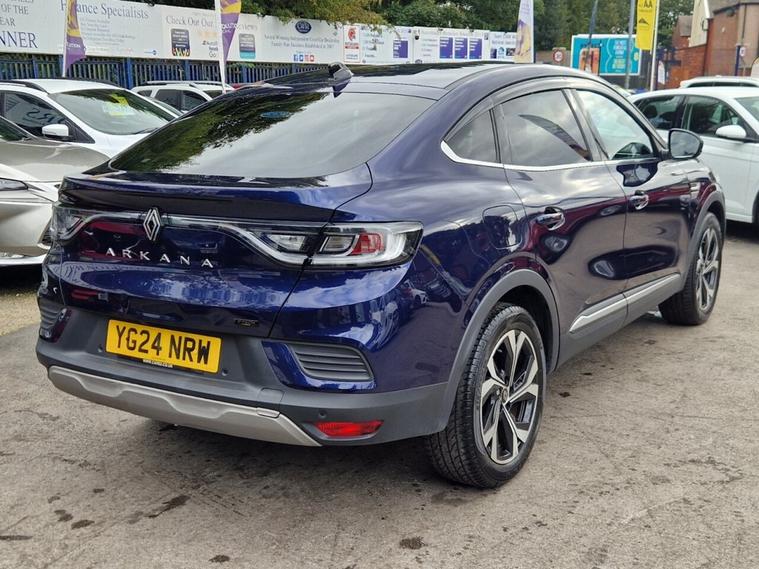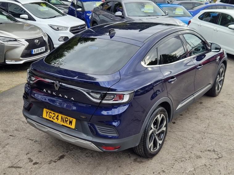 This 2024 Renault Arkana E-TECH techno boasts a full service history, with its last service completed at 19, 986 miles, offering peace of mind alongside its modern hybrid technology. This stylish SUV features a 1.6L petrol hybrid engine, meeting Euro 6 emission standards, and comes with a 6 month warranty and 12 months MOT provided on purchase. Notable features include Blind Spot Warning with assistance, convenient wireless smartphone charging, and a rear view camera for easier parking. The Arkana also offers automatic headlights and a handsfree keycard for keyless access and starting, making every journey smoother. The Renault Arkana E-TECH techno stands out with its impressive fuel economy, achieving up to 60 mpg, which is significantly better than many other vehicles in its class. Its low CO2 emissions further contribute to its efficiency and environmental consideration. Additionally, this model benefits from a low insurance group, indicating that running costs are kept to a minimum, making it an economical and practical choice for everyday driving.