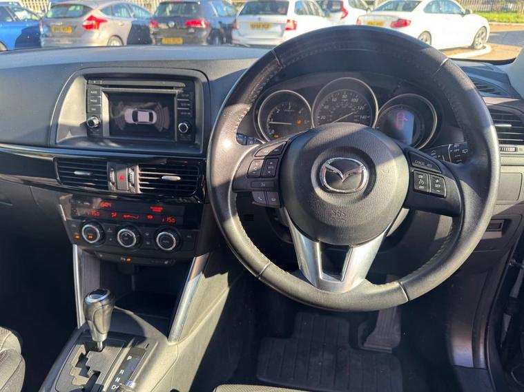 THIS WELL PRESENTED MAZDA CX-5 FINISHED IN GREY, COMES WITH SERVICE HISTORY, 2 KEYS AND FEATURES INCLUDING; DUAL CLIMATE CONTROL, AIR CONDITIONING, FULL LEATHER INTERIOR TRIM, HEATED FRONT SEATS, SATELLITE NAVIGATION, BLUETOOTH HANDSFREE, DAB DIGITAL RADIO/CD PLAYER WITH USB AND AUX POINTS. IT ALSO HAS BLUETOOTH MEDIA CONNECTIVITY, A MULTIFUNCTION STEERING WHEEL, CRUISE CONTROL, LANE ASSIST, AUTO HIGH BEAM LIGHTS, FRONT AND REAR PARKING SENSORS WITH REVERSING CAMERA, ELECTRIC WINDOWS, ELECTRIC POWER FOLD MIRRORS, KEYLESS START/STOP, AUTOMATIC GEARBOX, REMOTE CENTRAL LOCKING AND 17 ALLOY WHEELS.