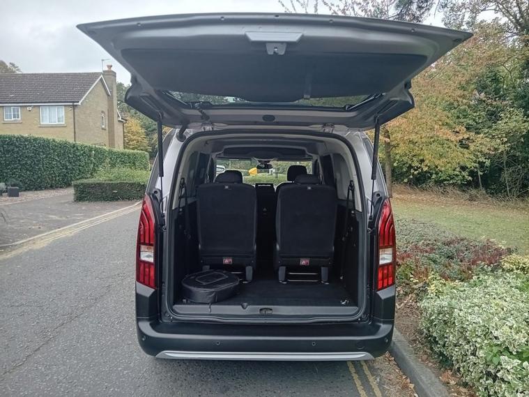 Seven Seats Long Wheelbase XL Automatic Gearbox Fully Electric 8in Capacitive Colour Touchscreen with Mirror Screen - Apple CarPlay and Android Auto Peugeot Connect SOS and Assistance Automatic Dual Zone Climate Control 17in Alloy Wheels - Aoraki 10in Digital Instrument Cluster 12V Power Socket 6-Speaker Radio - MP3 Compatible 7.4KW On Board Charger ABS with Electronic Brake Force Distributor EBD and Emergency Brake Assist EBA AVAS - Acoustic Vehicle Alerting System Air-Vents in 2nd Row with Fan Strength Command and USB Socket Airbags - Adaptive Driver and Front Passenger Automatic Door Locking When Moving Off Automatic Hazard Light Activation Upon Heavy Brake Application Black Front Bumper with Chrome Strip Grille Bluetooth Telephone Facility Body Coloured Front Bumper Child Locking Functionality on Rear Doors Contrasting Wheel Arch Trim DAB Digital Radio Dark Tinted Rear Side and Tailgate Windows Door Handles - Body Coloured Door Sill Protectors with Gloss Black Inserts Driver and Passenger Dashboard Mounted Cup Holders ESP - Electronic Stability Program - with Hill Assist Electric Front Windows Electric Parking Brake Electric Power Steering with Reach and Rake Adjustable Steering Column Electric Rear Windows Electrically Adjustable - Heated - Power Folding Door Mirrors Electronic Code Immobiliser Fixing Rings x4 in Load Area Front Fog Lights Front Interior Light with Reading Spotlights x2 and Rear Interior Light with Timer Front Optimised Safety Headrests and Rear Retractable Headrests - x3 - Height-Adjustable Front Three-Point Retractable Seatbelts with Force Limiters Front Windscreen Wipers with Multi-Speed Setting Front and Rear Curtain Airbags GT Line Emblems - Front Wings and Tailgate Gloss Black Door Mirrors Gloss Black Roof Bars Halogen Headlamps Headlights Left On Audible Warning High Console Between Front Seats with Storage Compartment ISOFIX Child Seat Fittings - x3 - Second Row Rear Seats LED Daytime Running Lights Built into the Headlight Unit Leather Steering Wheel Mode 3 Type 2 Cable for Wallbox Charging Mode Selector Multifunction Trip Computer Opening Tailgate Window Overhead Storage PEUGEOT Open and Go System Peugeot i-Cockpit - Compact Multi-Function Steering Wheel Peugeot i-Cockpit - Head-Up Instrument Panel Puncture Repair Kit Quente Brown Interior Ambiance Radiator Grille - 3D Stamped Effect and Black Surround Rear LED Peugeot Signature Claw Effect Lights Rear Windscreen Wiper Triggered Automatically in Reverse Gear Remote Central Locking - Two Remotes Remote Temperature Pre-Conditioning Retractable Parcel Shelf Safety Pack Safety Plus Pack Seatbelt Unfastened on the Move Audible and Visual Alert for Front and Rear Seats Seating - 2 Independent and Removable Sliding 3 Row Seat Seating - 3 Independent Rear Seat - 2 Row Seating - Foldable Passenger Seat with Under-Seat Storage and Elbow Rest Seating - Height Adjustable Driver Seat with Adjustable Lumbar Support - Under-Seat Storage and Elbow Rest Seating - Tray Tables at the Back of the Front Seats Tailgate with Heated Rear Windscreen and Wiper Blade Twin Sliding Side Doors - Glazed Tyre Pressure Sensors USB Socket USB Socket at the Back Upper Glove Compartment Visibility Pack Visio Park 1 - Rear Parking Sensors and 180 Degree Colour Reversing Camera Voice Recognition - Radio-Navigation-Telephony Features e-Rifter Badging - Rear e-Toggle Driving Selector