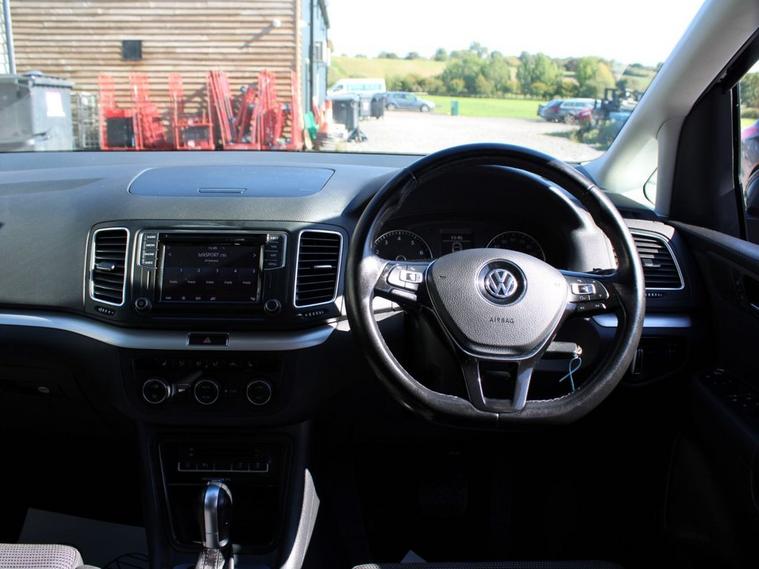 ***FOR VIEWINGS AND TEST DRIVES CALL US ON 01747692736 TO BOOK AN APPOINTMENT***One owner Sharan 7 seater automatic fitted with VWs 1.4 litre turbo petrol engine producing impressive power of 150 BHP and great fuel economy finished in black metallic with equipment including touch screen media unit with satellite navigation, DAB radio, rear parking camera, media connections, bluetooth, parking aid, auto air conditioning, auto lights, rear sliding doors, roof rails alloy wheels and more, 1 owner, 37250 miles, service history, high up driving position with easy access in and out of the cockpit***PART EXCHANGE AVAILABLE***USE THE FINANCE CALCULATOR ON OUR WEBSITE dealer's website AND QUOTE YOURSELF A MONTHLY PAYMENT FIGURE TODAY WITH ZERO DEPOSITS AVAILABLE***