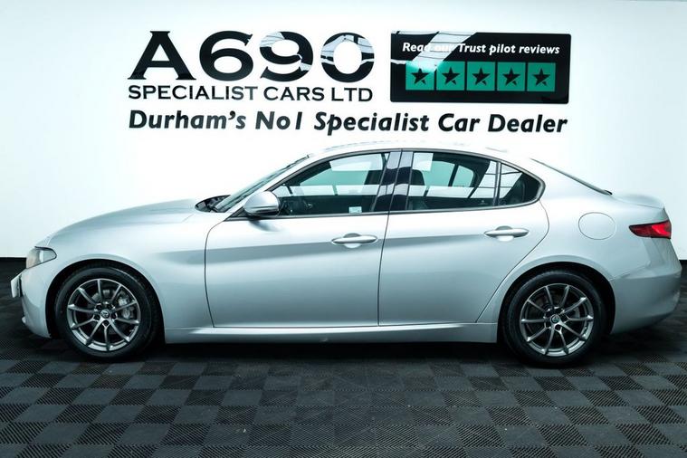 Welcome to our 2019 Alfa Romeo Giulia 2.2 TD Super Saloon automatic. Discover the perfect blend of Italian passion, precision engineering, and executive comfort with this stunning Alfa Romeo Giulia. Combining striking style with exceptional performance, this Giulia captures the true spirit of Alfa Romeo a car built for those who love to drive. Finished in a sophisticated Silver Stone Grey with elegant 17-inch alloy wheels, the Giulia turns heads wherever it goes. Its sculpted lines and signature Trilobo front grille make a bold statement, while the refined interior offers a driver-focused cockpit crafted with premium materials and meticulous attention to detail. Under the bonnet, the responsive 2.2-litre turbo diesel engine delivers an impressive 178bhp through an 8-speed automatic gearbox, providing effortless acceleration and smooth, dynamic handling. Alfas renowned rear-wheel-drive setup ensures an engaging driving experience with superb balance and agility equally at home on twisting country roads or the daily commute. Inside, the Super trim offers a luxurious specification, including leather and cloth sports seats, dual-zone climate control, cruise control, Alfa DNA drive mode selector, 7-inch infotainment display with navigation & Bluetooth connectivity. Safety features include lane departure warning, and multiple airbags for complete peace of mind. If youre seeking a saloon that combines style, sophistication, and sportiness in equal measure, look no further. Contact us today to arrange a viewing or test drive and experience the irresistible charm of the Alfa Romeo Giulia for yourself.
