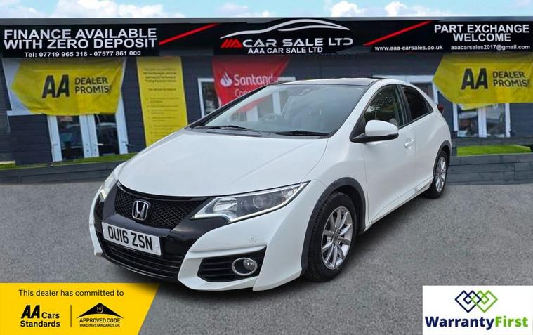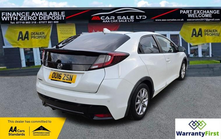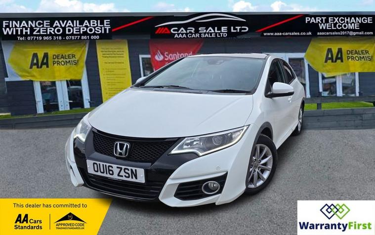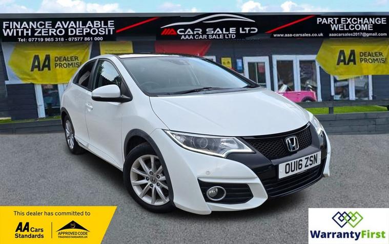 **AAA CAR SALES DARLINGTON LTD HAVE THE PLEASURE TO PRESENT THIS HONDA CIVIC 1.6 i-DTEC SR Hatchback 5dr Diesel Manual Euro 5 (s/s) (120 ps) IN WHITE ORCHID PAINT WORK. SERVICE HISTORY - SERVICED AT 8K, 17K, 30K, 37K AND SERVIED BY OUR TEAM AT 46K ** ALL OUR CARS GO THROUGH 72 POINT INSPECTION, ALL OF OUR CARS COME WITH 12 MONTHS AA BREAKDOWN COVER, UP TO 12 MONTH MOT WITHOUT ADVISORIES, INTERIM SERVICE, HPI CHECKED VIA EXPERIAN, 3 MONTHS WARRANTY WITH THE OPTION TO UPGRADE ***AUTOTRADER CUSTOMER SERVICE AWARD 2019, 2020, 2021&2022 YEAR ON YEAR***, WE ARE OPEN 7 DAYS A WEEK FOR YOUR CONVIENIENCE, CALL 01325950841 OR EMAIL US AT hello dealer's website or visit our website dealer's website , Service history, Clean bodywork - Clean Condition, Tyre condition Good, White, YOU CAN BUY WITH FULL CONFIDENCE FROM AAA CARS CHECK OUR AUTOTRADER REVIEWS FOR FULL PEACE OF MIND,