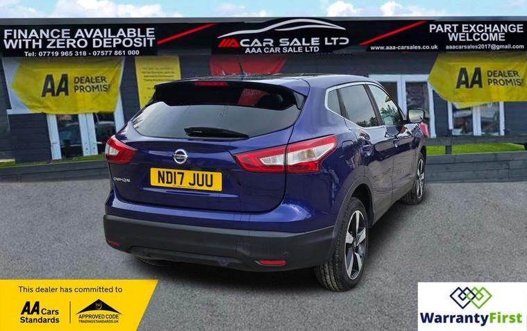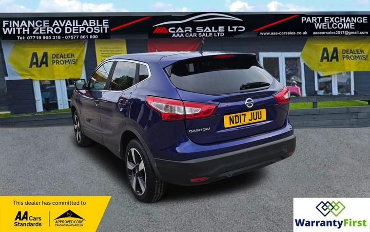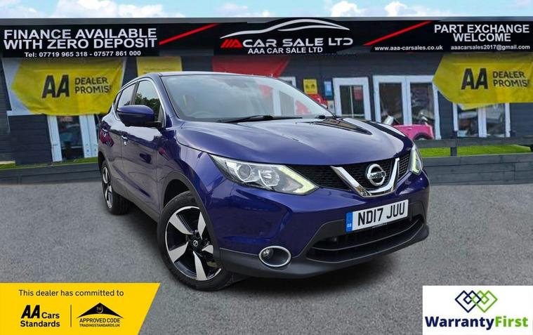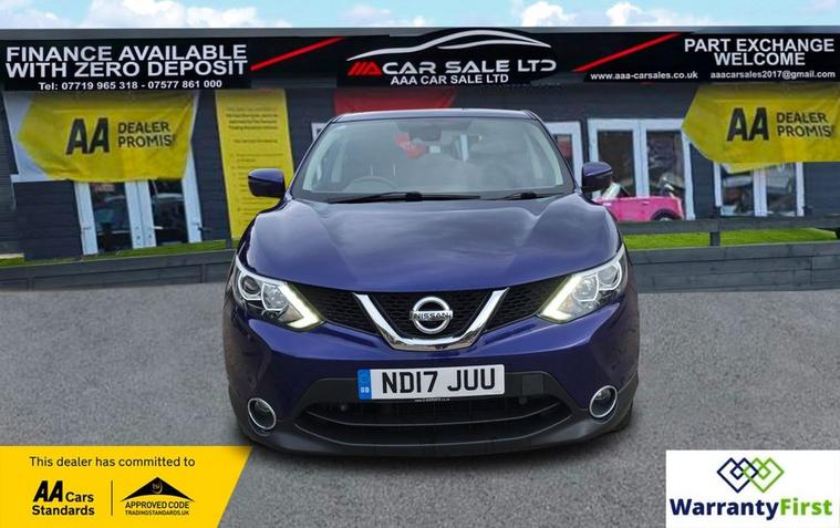 **AAA CAR SALES DARLINGTON LTD HAVE THE PLEASURE TO PRESENT THIS NISSAN QASHQAI 1.5 dCi N-Connecta SUV 5dr Diesel Manual 2WD Euro 6 (s/s) (110 ps) IN INK BLUE PAINTWORK , 2 KEYS, * SERVICE HISTORY - SERVICED AT 11K, 27K, 37K, 42K, 51K, 59K, 67K, 74K AND SERVICED BY US AT 76K ** ALL OUR CARS GO THROUGH 72 POINT INSPECTION, ALL OF OUR CARS COME WITH RECENT SERVICE, 12 MONTHS AA BREAKDOWN COVER, UP TO 12 MONTH MOT WITHOUT ADVISORIES, INTERIM SERVICE, HPI CHECKED VIA EXPERIAN, 3 MONTHS WARRANTY WITH THE OPTION TO UPGRADE ***AUTOTRADER CUSTOMER SERVICE AWARD 2019, 201325950841 ***, WE ARE OPEN 7 DAYS A WEEK FOR YOUR CONVIENIENCE, CALL 01325950841 OR EMAIL US AT hello dealer's website or visit our website dealer's website Service history, Clean bodywork, Grey Cloth interior - Excellent Condition, Tyre condition Excellent, YOU CAN BUY WITH FULL CONFIDENCE FROM AAA CARS CHECK OUR AUTOTRADER REVIEWS FOR FULL PEACE OF MIND,