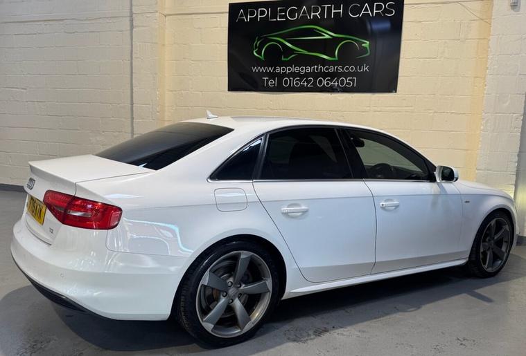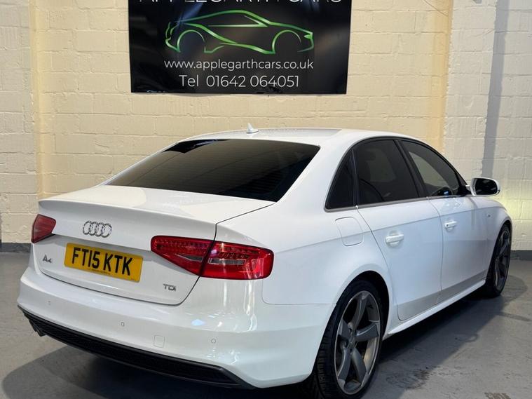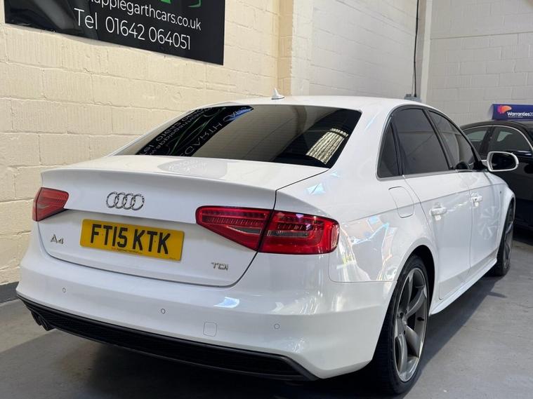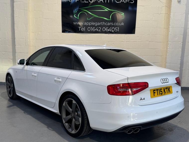 For Sale: AUDI A4 2.0 TDI S line Saloon 4dr Diesel Multitronic Euro 6 (s/s) (Nav) (150 ps) Price: £9, 190 Year: 2015 (15) Mileage: 82, 376 miles Engine Size: 2.0L Fuel Type: Diesel Transmission: Automatic (Multitronic) Body Style: Saloon Colour: White Doors: 4 Seats: 5 The Audi A4 2.0 TDI S line combines luxury, performance, and efficiency in a sleek saloon design. With 150 ps and Audis renowned build quality, this premium model offers an excellent balance of power, comfort, and economy. Finished in timeless white with S line styling, this A4 stands out with sporty design details and a refined interior, making it a great choice for both professional and personal driving. Specification Highlights: S line Exterior Styling Pack 18 Alloy Wheels Half-Leather / Alcantara S line Sports Seats MMI Navigation System with Colour Display Bluetooth Hands-Free & Media Streaming DAB Digital Radio / AUX / USB Connectivity Cruise Control with Speed Limiter Dual-Zone Climate Control Multi-Function S line Steering Wheel Front & Rear Parking Sensors Bi-Xenon Headlights with LED Daytime Running Lights Automatic Lights & Rain-Sensing Wipers Electric Folding Mirrors & Windows Isofix Child Seat Mounting Points This Audi A4 S line blends sporty looks with executive comfort and impressive economy the ideal premium saloon for motorway driving, city commutes, or family use. Contact us today to arrange a test drive or reserve online!