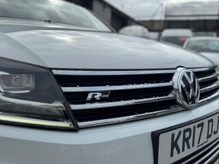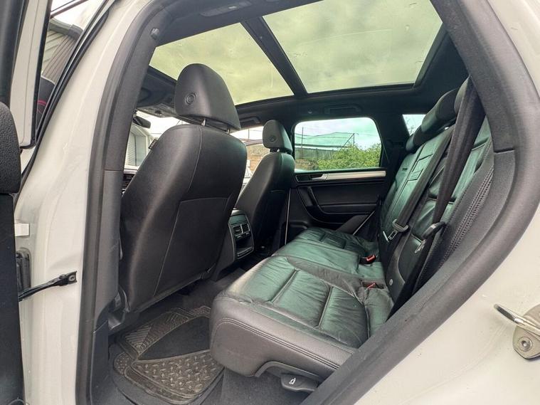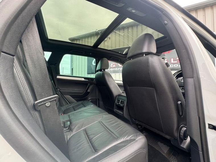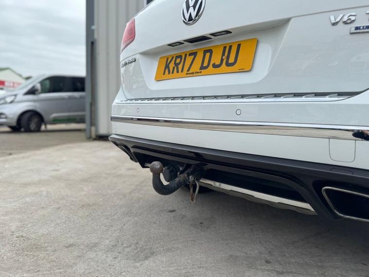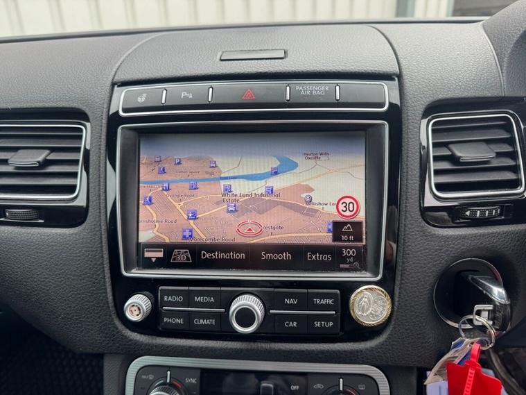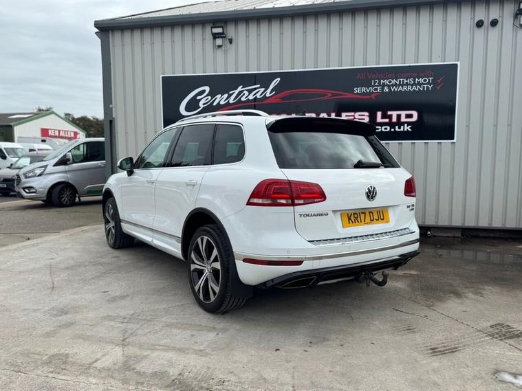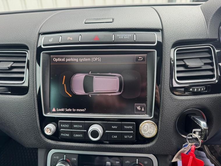 May 2017 Volkswagen Touareg 3.0 TDI V6 TDI finished in Onyx White. The car has done 73, 696 miles from new and comes with extensive service history, The car is Euro 6 so conforms to the ULEZ requirements meaning no congestion charges! as the car is safe for the environment! The car produces 201BHP and has a 8 speed automatic transmission with paddle shifts. Road tax costs just £195 for 12 months and it is insurance4 group 40E The car returns 36mpg urban, 46mpg extra urban and 43mpg combined top speed of 130 MPH 0-60MPH in 8.7 seconds CO2 OUTPUT OF 176 G/KM. The car has 20 black/chrome alloy wheels, multi function steering wheel, x4 electric windows, heated electric door mirrors with power fold, heated steering wheel multiple airbags, 8 speed auto, start/stop, traction control, cup holders, climate control, air conditioning, heated seats, cruise control, electronic parking brake, auto hold, glovebox and dash box, storage under centre armrest, rear armrest, auto lights, paddle shifts, pan roof, ISOFIX car seat jacking points, piano black dashboard trims, keyless entry, keyless go.