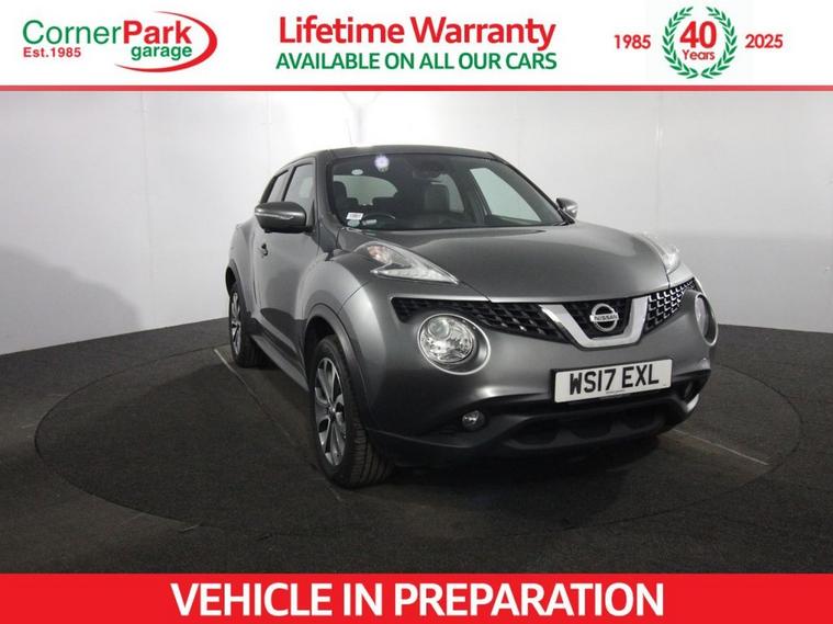 1 Owner. Introducing the 2017 Nissan Juke 1.2 DIG-T Tekna, a sporty and stylish 5-door compact SUV designed for urban agility and modern convenience. Finished with 17-inch Urban alloy wheels, body-coloured door handles and mirrors with LED indicators, and sleek LED signature daytime running lights, this Euro 6 petrol manual combines bold design with refined detailing. The rear privacy glass and integrated rear tonneau cover enhance its sporty yet practical appeal. Powered by a responsive 1.2-litre DIG-T petrol engine producing 115ps, the Juke Tekna offers lively performance paired with excellent fuel efficiency and start-stop technology. The model is loaded with features such as NissanConnect with DAB and internet radio, intelligent key with push-button start, automatic climate control with pollen filter, cruise control with speed limiter, and a colour reversing camera. Safety is well-covered with multiple airbags, ESP, traction control, tyre pressure monitoring, and a comprehensive safety pack for peace of mind. Inside, the cabin boasts leather-trimmed steering wheel and gear knob, heated front seats, height-adjustable drivers seat, front armrest and cup holders, and ample storage including front door pockets with bottle holders. Additional comforts include power-folding heated mirrors, electronic front and rear windows, Bluetooth telephone integration, and a multifunction drive computer with temperature gauge. The 2017 Nissan Juke Tekna blends dynamic styling, advanced technology, and practical features, making it a compelling choice in the compact SUV segment.