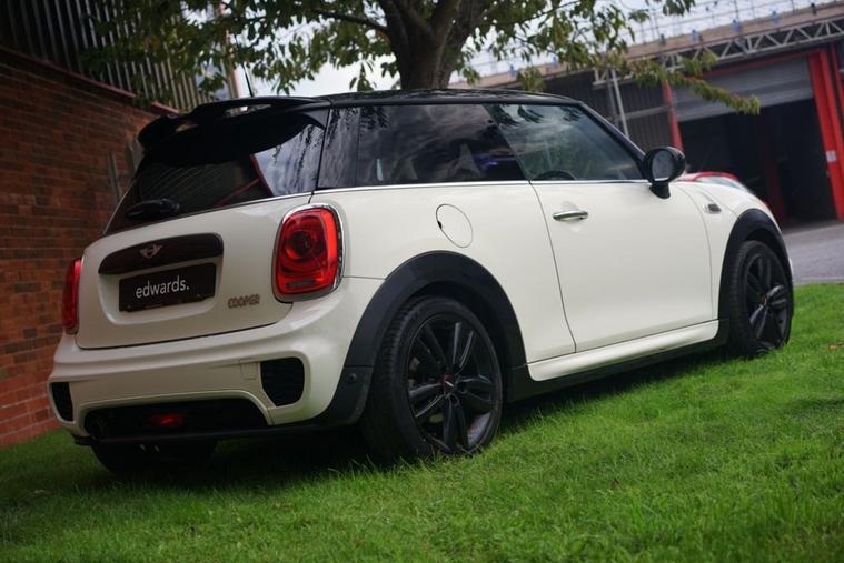 A stunning MINI 1.5 Cooper in Pepper White with Carbon Black Interior Trim which has covered 37k miles. JCW Sport Pack inc JCW Aerodynamic Bodykit and 17inch JCW Track Spoke Wheels, Heated Seats, Sat Nav and LED Headlights. Service History