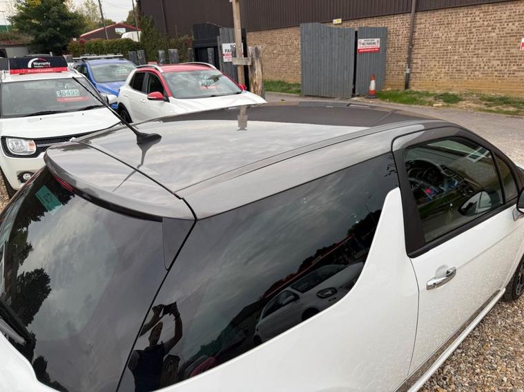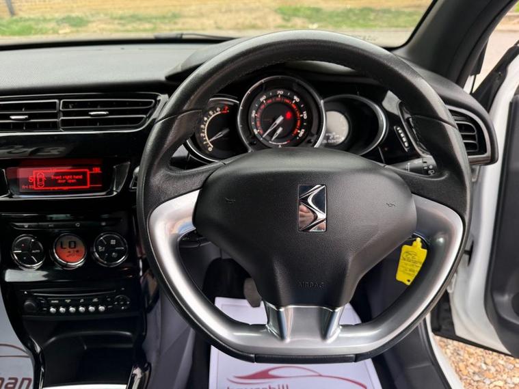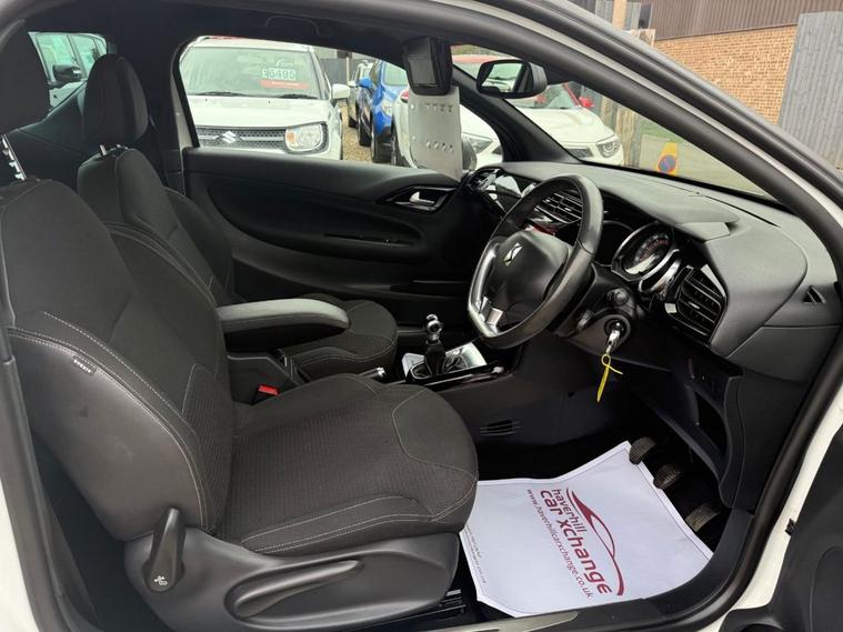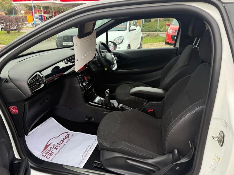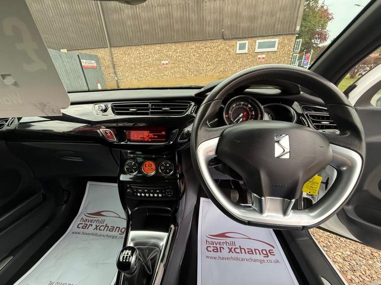 ONE OWNER+ONLY 51, 582 MILES+SERVICE HISTORY CONSISTS OF X8 SERVICED+SOLD WITH 12 MONTHS MOT UNTIL 28.02.2026+RADIO/CD/MP3 PLAYER+BLUETOOTH+AUTOMATIC CLIMATE CONTROL AIR-CONDITIONING+AUTOMATIC HEADLIGHT ACTIVATION+RAIN-SENSING WINDSCREEN WIPERS+PARKING ASSISTANCE+POLAR WHITE PAINT, PERLA NERA BLACK ROOF AND DOOR MIRRORS+17 INCH ALLOY WHEELS. At Haverhill Car Xchange we would like to offer you our ONE OWNER, LOW MILEAGE Citroen DS3 DStyle Hatchback which has been finished in a Polar White paint, Perla Nera Black Roof and Mistral Rayados Cloth upholstery. Specification Includes Radio, CD and MP3 Player, Connecting Bluetooth System, USB Socket, Auxiliary Socket, 12 Volt Power Socket, Climate Control Air-Conditioning, Gear Efficiency Indicator, Cruise Control, Electric Front Windows with One-Touch Operation on Drivers Side, Body Coloured Bumpers, Chrome Door Handles, Chrome Front Grille Surround, Perla Nera Black Door Mirrors with Chrome Base, Automatic Halogen Headlight Activation, LED Daytime Running Lights, Front Fog Lights, Auto Dimming Rear-View Mirror, Rain-Sensing Windscreen Wipers, Parking Assistance, Steering Wheel Mounted Controls, Dark Tinted Windows, 17 Inch Alloy Wheels, Automatic Door and Boot Locking when in Motion, ABS Breaking System, Automatic Activation of Hazard Warning Lights, Airbags, Remote Central Locking and ISOFIX Anchorage Points for Child Seats.
