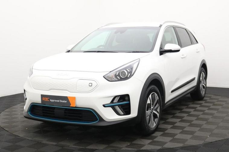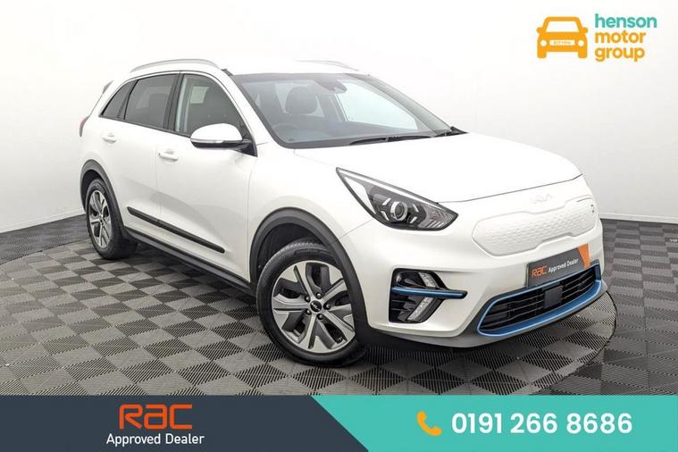 Henson Car Store presents the KIA NIRO 64kWh 2 SUV 5dr Electric Auto finished in White, this car comes with service history and is VAT qualifying. This 2021 KIA Niro 64?kWh 2 is a stylish and practical electric SUV that feels effortless to drive. Its 201?bhp electric motor gives it smooth, instant acceleration, making city driving and motorway cruising equally easy. The 64?kWh battery provides a solid range of around 280 miles, and charging is flexibleyou can top up at home, use a fast AC charger, or hit a rapid DC station for a quick boost. Inside, its spacious and comfortable, with seating for five and a generous boot that expands when you fold the rear seats. The cabin comes with a clear 8?inch touchscreen, Apple CarPlay and Android Auto, a digital driver display, and all the little touches that make life easier, like adaptive cruise control, parking sensors, and a reverse camera. On the outside, the Niro looks modern with aerodynamic lines and 17?inch alloy wheels, giving it a confident stance without feeling too bulky. With zero emissions, low running costs, and Kias solid reliability, its a fun, practical, and eco-friendly choice for anyone wanting an electric SUV that works day to day.