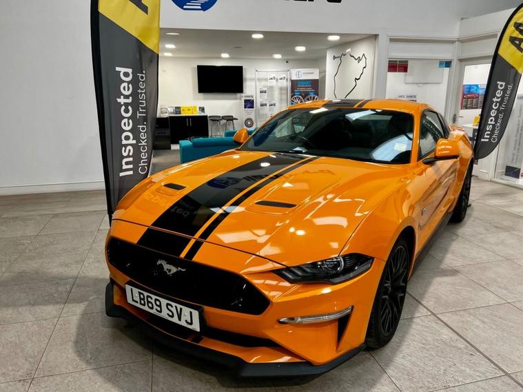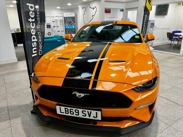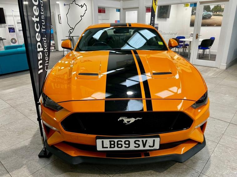 Command attention with this Twister Orange Ford Mustang 5.0 V8 GT Fastback, a true icon of performance and presence. Beneath its sculpted bonnet lies a naturally aspirated 5.0-litre V8, delivering an exhilarating 450ps through the refined SelShift automatic gearbox. The unmistakable soundtrack of the Mustangs engine pairs perfectly with its thrilling acceleration, making every drive an event. Styled to stand out, this example features bold black bonnet stripes that accentuate its muscular lines, while the Fastback profile captures the spirit of American performance heritage. Inside, ebony leather upholstery adds a touch of sophistication, blending comfort with a cockpit designed for driving enthusiasts. Equipped with the all-important Sync 2 upgrade, the car ensures modern connectivity and convenience without compromising its raw, engaging character. Whether carving along winding roads or cruising with effortless power, this Mustang embodies freedom, strength, and unmistakable style in its purest form. Service History 02/10/2025 @ 25500 miles 26/02/2024 @ 13688 miles 29/01/2022 @ 8217 miles At Kallenhard Engineering we specialise in Performance, Prestige, and 44s. Because preparation is at the heart of everything we do, all our cars are prepared mechanically and cosmetically to the highest standards. Starting with an independent AA inspection, any work highlighted (including due services) will be completed before you pick up your new car. All cars come with a 6-month Autoguard warranty and extended warranties are available on request. In addition to this, a clear HPI along with the full AA report is provided with your purchase for added peace of mind. Parking sensors can be fitted upon request if not already factory fitted. The Post Code for your Sat Nav is LU7 0GR.
