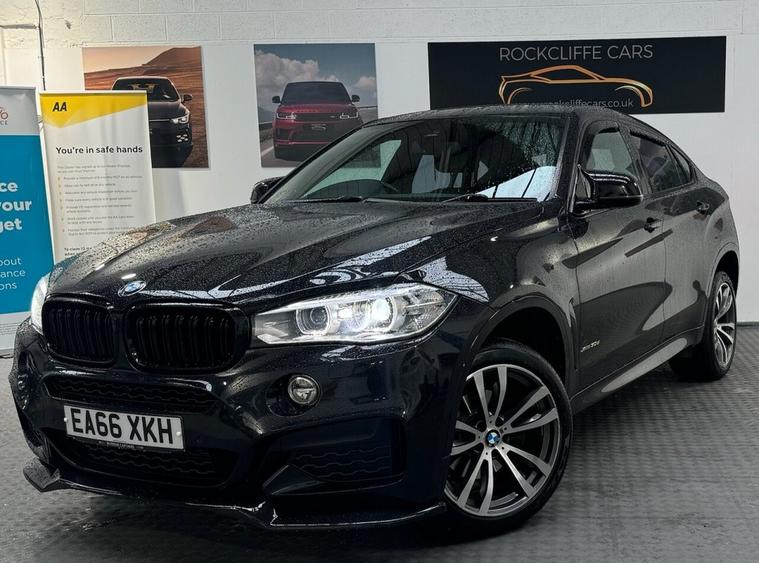 BMW X6 3.0 30d M Sport SUV 5dr Diesel Auto xDrive Euro 6 (s/s) (258 ps) EA66ZXK Finished in Black 80, 000 Miles Rockcliffe Cars are delighted to present this stunning 2016 (66 plate) BMW X6 3.0 30d M Sport Auto xDrive, finished in sleek Black with matching M Sport styling package. This premium SUV has covered only 80, 000 miles and combines luxury, power, and practicality in one of BMWs most iconic coupe-styled SUVs. Under the bonnet, the 3.0-litre 6-cylinder diesel engine delivers a powerful 258 PS, paired with the smooth 8-speed automatic transmission and BMWs renowned xDrive all-wheel-drive system, ensuring strong performance and stability in all conditions. Despite its size and power, this X6 is Euro 6 compliant, making it efficient and ULEZ-friendly. Key Features & Specification: 3.0 30d 6-Cylinder Diesel Engine 258 PS 8-Speed Automatic Gearbox with Paddle Shift xDrive Intelligent All-Wheel-Drive System M Sport Body Styling & Interior Trim Full Black Exterior with Privacy Glass 19/20-inch M Sport Alloy Wheels LED Headlights with Daytime Running Lights Front & Rear Parking Sensors with Reversing Camera Full Leather Interior with Heated Front Sports Seats Electric Front Seats with Driver Memory Function Dual-Zone Climate Control & Air Conditioning BMW Professional Navigation System with iDrive Controller Bluetooth Telephone & Audio Streaming DAB Digital Radio / USB / AUX Connectivity Cruise Control with Speed Limiter Multifunction M Sport Leather Steering Wheel Power Tailgate for Added Convenience Isofix Child Seat Preparation Condition & History: This BMW X6 has been well looked after and presents in excellent condition both inside and out. The paintwork retains a deep shine, the alloys are in great order, and the interior is clean, modern, and comfortable. Mechanically, it drives superbly with the strong yet smooth diesel engine and responsive automatic gearbox. Why Buy This BMW X6? Striking coupe-styled SUV design with M Sport finish Powerful yet efficient 3.0 diesel engine Premium luxury interior with all modern refinements Excellent practicality with a spacious boot and 5-seat layout xDrive AWD for confidence in all weather conditions Available now at Rockcliffe Cars, Master Rd, Thornaby, TS17 0BE Call us today on 01642906939 to arrange a viewing or test drive. Finance options and part exchange are available.