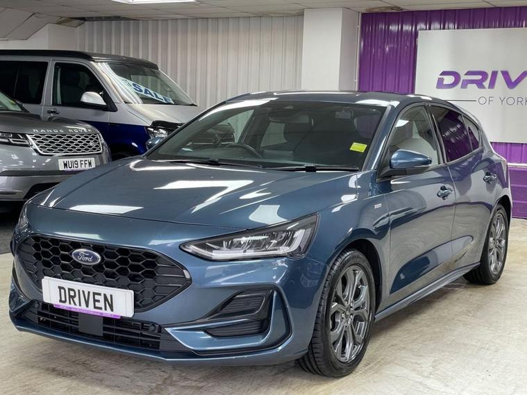 Driven Of York Are Proud To Present This Stunning 2022 Ford Focus 1.0 ST-Line MHEV EcoBoost Presented In Chrome Blue With Complimenting Black Cloth Interior. This Fantastic Vehicle Features 17 Grey ST-Line Alloy Wheels, Automatic Headlights With Daytime Running, Front And Rear Parking Sensors, Privacy Glass, SAT NAV, Bluetooth, USB And USBC Connectivity, SYNC Connectivity With Apple Carplay And Android Auto, FM/DAB Radio, Cruise Control With Limiter, Leather Multifunction Steering Wheel, Dual Zone Climate Control, Heated Front Windscreen, Automatic Gearbox With Sports Drive Option! WIFI, Hotspot, Traffic Sign Recognition And Lane Keep Assist. This Amazing Vehicle Also Comes With Great Service History With 5 Total Services 4 By Main Dealers. Reserve Now For Just £ 149!