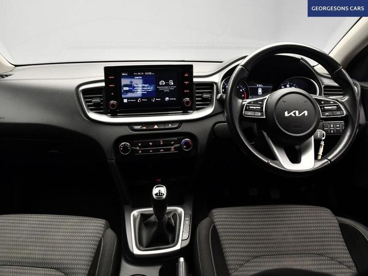 The Kia Ceed 1.0 T-GDi 2 Sportswagon combines a responsive 1.0-litre turbo petrol engine with 120hp, delivering 0-62mph in 11.3 seconds and up to 53.3mpg in this front-wheel-drive setup with a precise 6-speed manual transmission. The 2 trim offers practical style with a spacious estate design for versatile family motoring. Navigate effortlessly with integrated satellite navigation, Apple CarPlay, Bluetooth, and DAB radio, ensuring seamless connectivity on every journey. Parking is a breeze thanks to the reverse camera, providing clear visibility and confidence in tight spaces. Stay comfortable with air conditioning, offering personalized cooling year-round. Adaptive cruise control with speed limiter enhances safety and relaxation on highways. The spacious five-door estate layout includes a 625-litre boot expanding to 1, 694 litres for exceptional practicality. C
