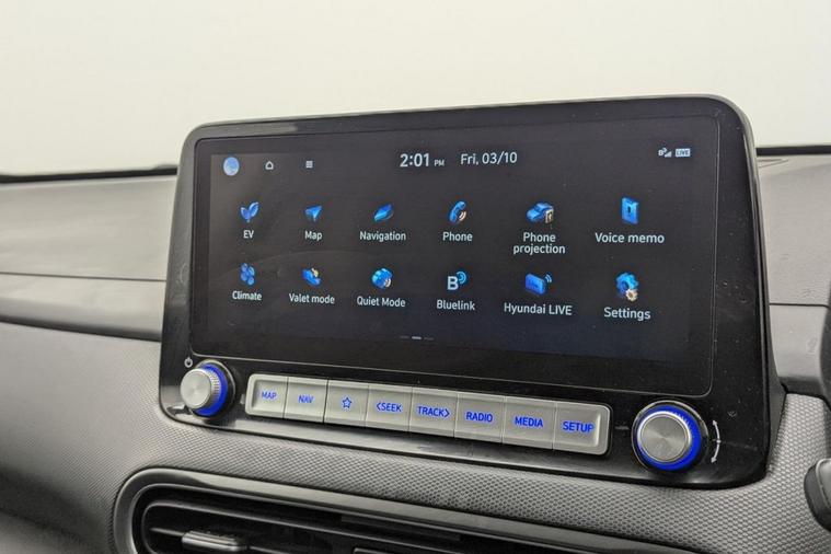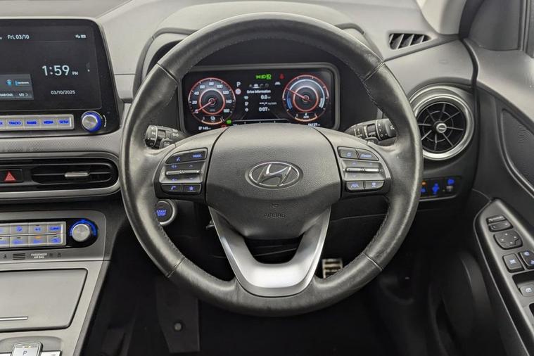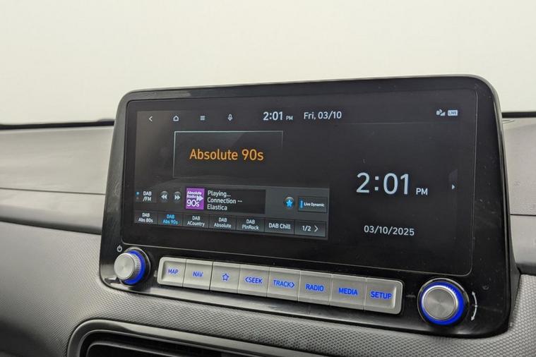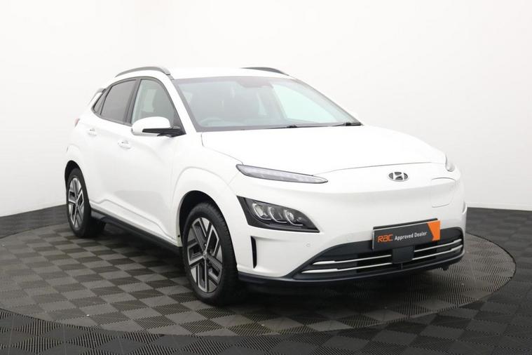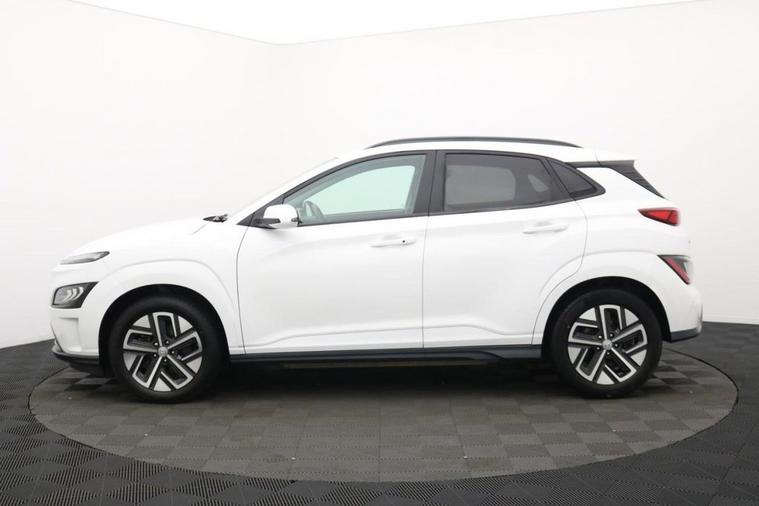Henson Car Store presents the HYUNDAI KONA 39kWh Premium SUV 5dr Electric Auto (10.5kW Charger) finished in White, this car comes with service history. This 2022 Hyundai Kona 39kWh Premium is a fully electric compact SUV that combines stylish design, practical versatility, and efficient zero-emissions driving. Powered by a 39kWh battery and an electric motor, it delivers smooth, quiet, and responsive performance, making it ideal for city commutes as well as longer journeys. With an automatic transmission and a 10.5kW onboard charger, the Kona offers convenient home and public charging, helping to keep running costs low. The Premium trim elevates the Konas appeal with a modern, well-equipped interior featuring high-quality materials, a touchscreen infotainment system with Apple CarPlay and Android Auto, DAB radio, and satellite navigation. Comfort is enhanced with heated front seats, automatic climate control, and a spacious cabin that provides ample room for passengers and luggage, making it practical for families and active lifestyles. Safety is a key strength of the Kona, with features such as lane keeping assist, forward collision avoidance, rear parking sensors, and multiple airbags providing peace of mind on every journey. The exterior design is bold and contemporary, with sleek LED daytime running lights, stylish alloy wheels, and a distinctive SUV stance that gives the Kona a confident road presence.