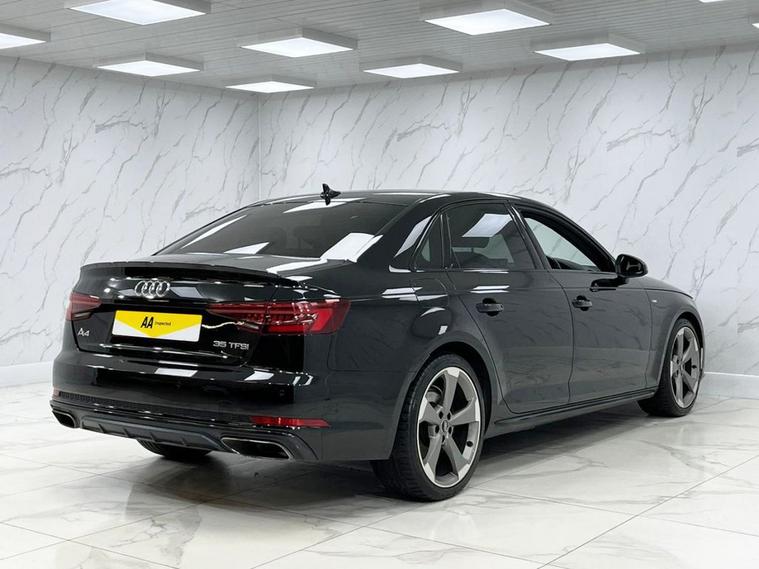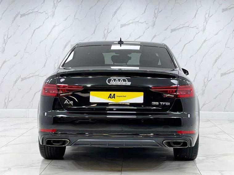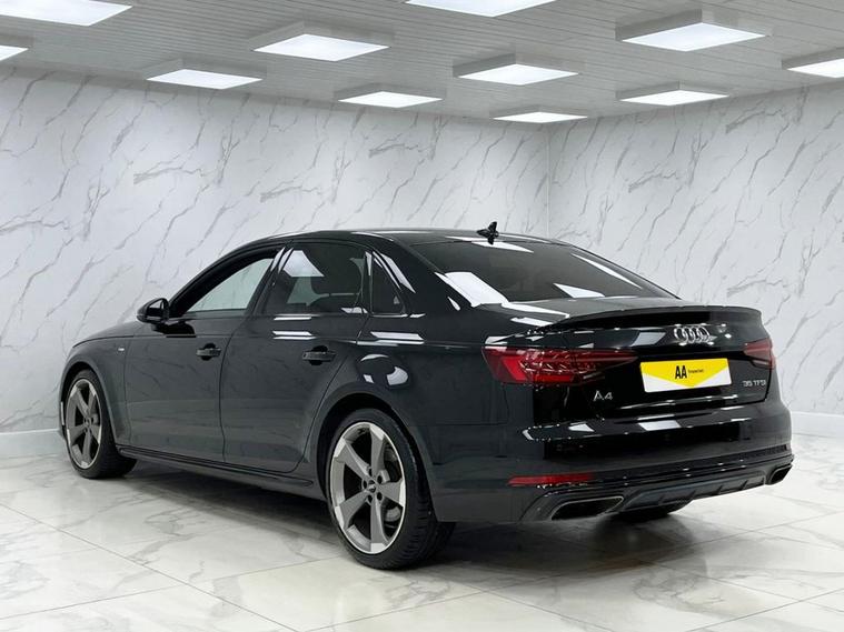 This 2019 Audi A4 TFSI Black Edition offers excellent value with its MOT valid until April 2026. This stylish saloon features a 2.0 litre petrol engine and meets Euro 6 emissions standards. The Black Edition trim enhances its appeal, and youll appreciate the convenience of the Parking System Plus, which includes front and rear sensors, alongside automatic LED headlights with dynamic rear indicators. Inside, enjoy the comfort of Deluxe 3-Zone Electronic Climate Control and stay connected with the integrated Bluetooth interface. This Audi A4 stands out with its low CO2 emissions, indicating a more environmentally conscious choice compared to many similar vehicles. Furthermore, its placement in a low insurance group suggests that running costs will be more affordable. The inclusion of a Light and Rain Sensor, which automatically activates the headlights, adds to the overall ease of driving and safety.