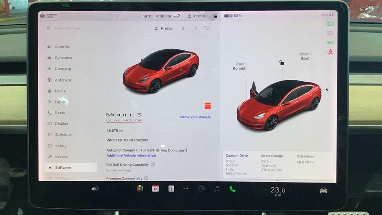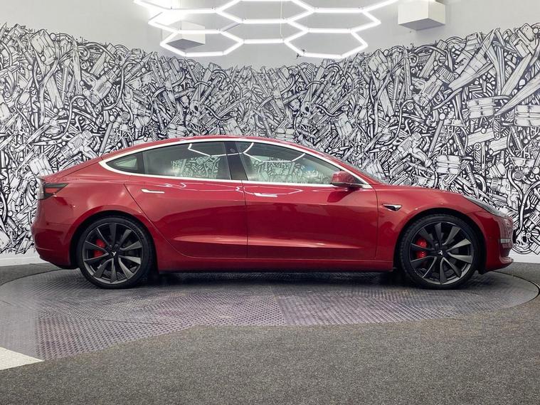 This 2019 Tesla Model 3 Performance is a rare find, having had only one owner from new and boasting exceptionally low mileage for its age. As a fully electric vehicle, it offers a compelling blend of performance and efficiency, with a substantial 82 kWh battery providing a maximum range of 329 miles when new. This four wheel drive model is equipped with a suite of advanced features, including Keyless Go for effortless entry and starting, and Bluetooth connectivity for seamless device integration. Comfort is paramount, with 12 way power adjustable front and rear seats that are also heated, ensuring a pleasant journey in any weather. The Model 3 Performance truly excels in its driving dynamics, achieving an impressive 0 to 60 mph in just 3.2 seconds, a figure that highlights its superior acceleration compared to many other vehicles in its class. For added safety and convenience, it features Adaptive Cruise Control to maintain a set speed and distance from the vehicle ahead, and Blind Spot Information to alert you to vehicles in your blind spots. Charging is convenient, with a full charge at home taking approximately 12 hours on a 7kW charger, and rapid charging to 80% possible in as little as 26 minutes at a public charging station.