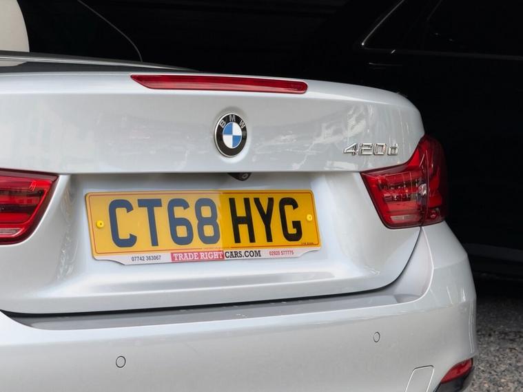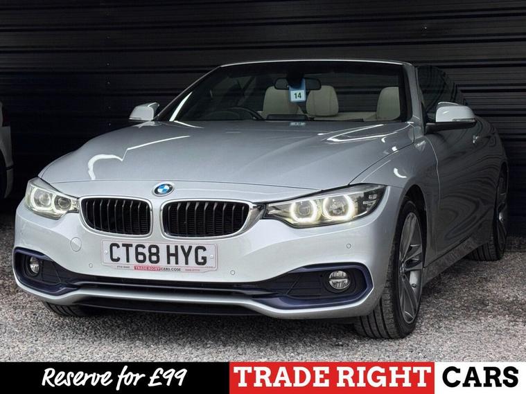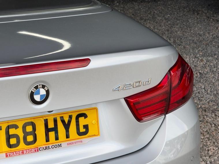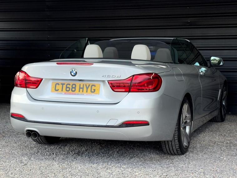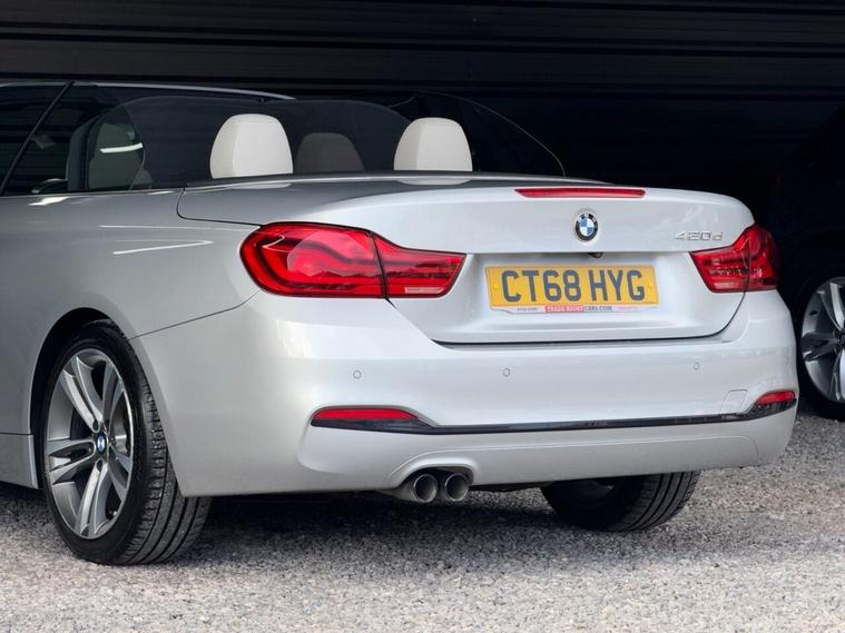 JUST ARRIVED & READY TO DRIVE AWAY! 2018/68 BMW 420d 2.0 Sport [Nav] finished in Glacier Silver. We are pleased to offer this lovely 2 door diesel convertible. This is the highly desirable and economical 2.0 litre model with an 8 speed automatic transmission that offers 188 BHP and over 45 MPG. It has covered just 50, 188 miles with full service history (4 services, 3 @ BMW) and drives as you would expect. The services intervals are 18k/12 months. Just serviced upon arrival. MOT until 5th October 2026 with no advisories (we renewed 2 tyres and the front discs/pads as part of our vehicle preparation. The car is ready to drive away. We will also include a complimentary 12 month AA breakdown cover. Two owners from new, the last owner has had the car since 2022. Euro 6 status - ULEZ compliant. A superb low mileage example with the sought-after and upgraded Sport [Nav] specification. Key features include; ivory white Dakota leather, 18 double spoke 397 alloy wheels, A/C, navigation, heated seats, bluetooth connectivity, cruise control with brake function, DAB, extended lighting, LED headlights & DRLs, front/rear parking sensors with rear camera, keyless start, electric folding mirrors and electric/memory seats. Advertised below the AutoTrader RRP. Please let us know if you would like any further information or a video sent via WhatsApp. Please be aware many of our cars sell before the photos go live so please call or reserve to avoid any disappointment.