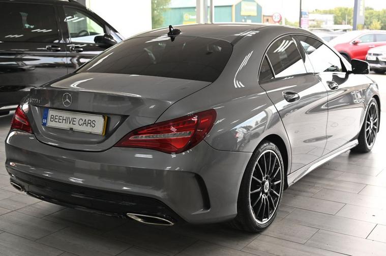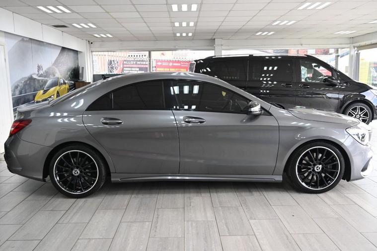 DRIVE AWAY TODAY OR HOME DELIVERY TO YOUR DOORSTEP FINANCE & PART EXCHANGE ARRANGED ONLINE** 7 DAY MONEY BACK GUARANTEE** Lovely car Mercedes Cla220d amg line night edition in metallic storm grey with full mercedes service history sat nav cd radio bluetooth media usb reverse camera half leather seats with armrest heated seats electric folding door mirrors front parking aid sensors xenon lights flat bottom steering wheel with f1 style paddleshifts eco comfort sport individual dynamic driving modes push button start stop alloys privacy