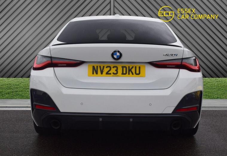 This 2023 BMW 4 Series Gran Coupe 420i M Sport boasts a full dealership service history, ensuring its excellent provenance. This Euro 6 compliant model features a 2.0L petrol engine and has an MOT valid until March 2026, with a clear vehicle history check. The last service was completed on 2025-05-06 at 38, 608 miles. Notable features include the Comfort Package with keyless entry and a heated steering wheel, the M Sport Pro Package, and LED headlights. Inside, youll find the BMW Live Cockpit Professional with Bluetooth connectivity. Experience the dynamic performance of this 4 Series Gran Coupe, accelerating from 0-60mph in just 7.9 seconds. These highlights demonstrate its superior quality compared to other vehicles in its class. The combination of the powerful 2.0L engine and the M Sport trim offers a refined driving experience, while the inclusion of the Comfort Package and M Sport Pro Package enhances both convenience and sporty aesthetics.
