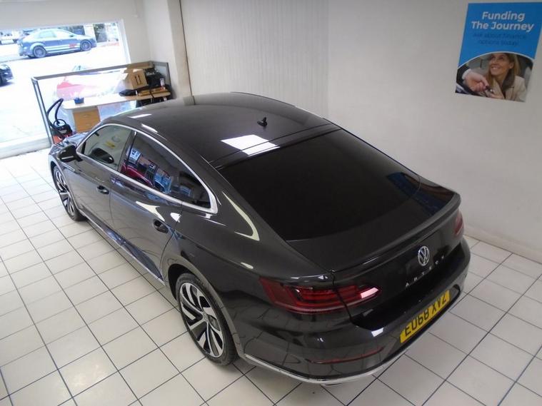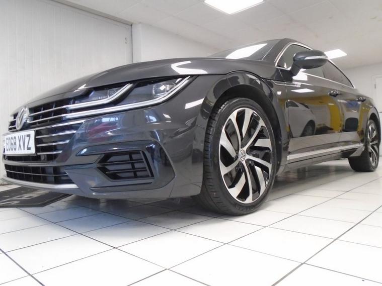 Discover the perfect combination of style, performance, and practicality with this 2018 Volkswagen Arteon 2.0 TDI R-Line Fastback. Powered by a responsive 2.0-litre TDI diesel engine and paired with a smooth 6-speed manual transmission, this Euro 6-compliant model delivers a confident and efficient drive, whether youre navigating city streets or cruising on the motorway. The R-Line trim enhances the Arteons already striking appearance with sporty design elements, including an aggressive front bumper, sculpted side skirts, and 19-inch alloy wheels. LED headlights and daytime running lights provide both improved visibility and a modern edge, while the fastback silhouette adds a sleek, premium touch. Inside, the cabin offers a refined, driver-focused layout with high-quality materials throughout. Sport seats, ambient lighting, and the spacious interior provide a comfortable and enjoyable environment for both driver and passengers. The advanced infotainment system features a touchscreen interface with satellite navigation, DAB radio, Bluetooth connectivity, and support for Apple CarPlay and Android Auto. Additional highlights include adaptive cruise control, front and rear parking sensors, dual-zone climate control, keyless start, lane assist, and emergency braking, all designed to make your journeys safer and more convenient. The large boot and split-folding rear seats ensure that practicality is never compromised.