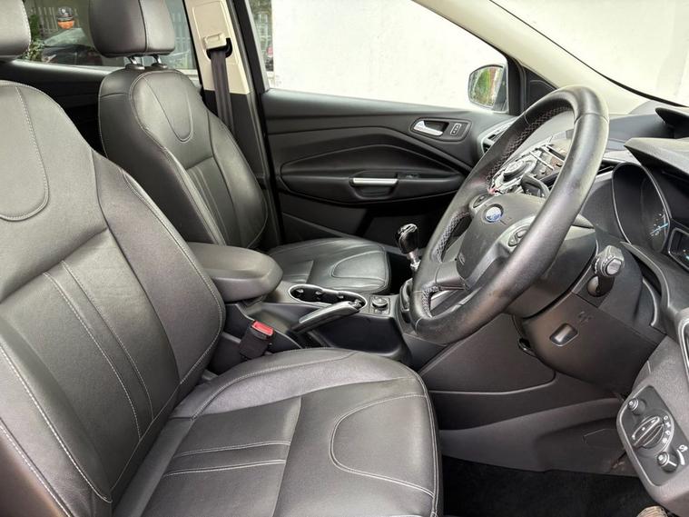 THIS WELL PRESENTED, LOW MILEAGE FORD KUGA TITANIUM X FINISHED IN METALLIC BLACK. COMES WITH 2 KEYS, SERVICE HISTORY AND A BRAND NEW CAM BELT KIT. COMES WITH FEATURES INCLUDING, HEATED FRONT WINDSCREEN, DUAL CLIMATE CONTROL WITH AIR CONDITIONING, BLUETOOTH HANDS-FREE, FULL BLACK LEATHER TRIM, PANORAMIC GLASS ROOF, HEATED FRONT SEATS, FRONT AND REAR PARKING SENSORS, PARK ASSIST, RADIO/CD PLAYER WITH AUX AND USB POINT, MULTI FUNCTION LEATHER STEERING WHEEL, CRUISE CONTROL, AUTO LIGHT, AUTO WIPERS, REAR PRIVACY GLASS, 4 X ELECTRIC WINDOWS, ELECTRIC POWER FOLD MIRRORS, LED DRIVING LIGHTS, 6 SPEED MANUAL GEARBOX, REMOTE CENTRAL LOCKING AND 18 ALLOY WHEELS. *** EXACT MILEAGE - 54, 186 ***