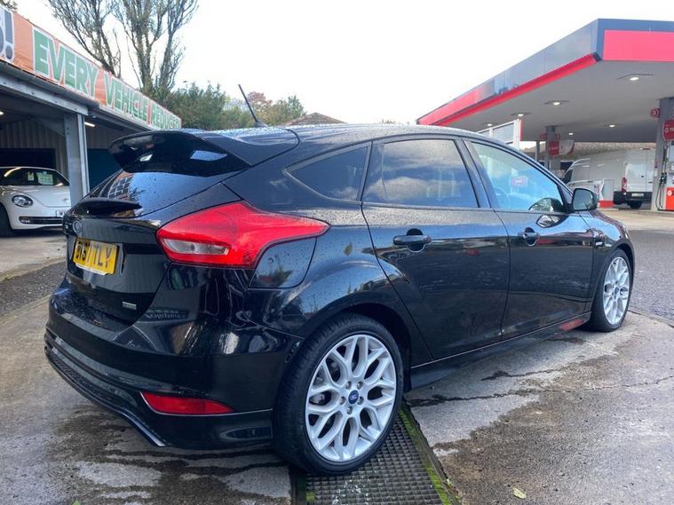 Just Drive are thrilled to offer this superb Focus ST-Line Turbo and its purposeful appearance is backed up by the driving experience. Its 1.0 Turbo 125 Bhp petrol engine revs smoothly to deliver peppy performance, while its sports-tuned suspension strikes a nice balance between comfort and dynamism. This is enhanced by its well-weighted, direct steering, and a precise, light gearshift. It really is an excellent example of a warm hatch. Fully colour coded in Shadow Black, the sporty exterior is enhanced with 18 alloy wheels, privacy glass and sports body styling. Inside theres sport style seats and Fords famous SYNC touchscreen media system - this includes Bluetooth connectivity, voice control and also supports Apple CarPlay and Android Auto. Ice cold air conditioning will keep you cool and there are many other features to enjoy in this highly equipped Focus.