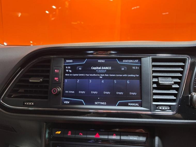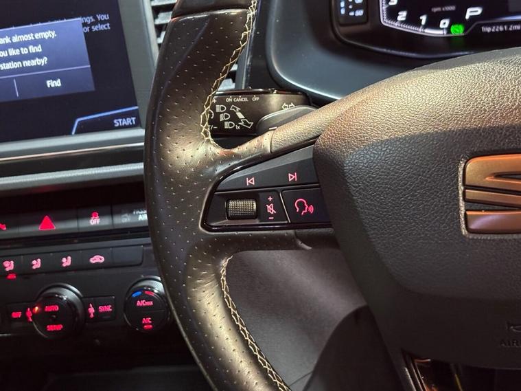 - Flat Bottomed-Perforated Leather Steering Wheel with White Stitching and CUPRA Logo
