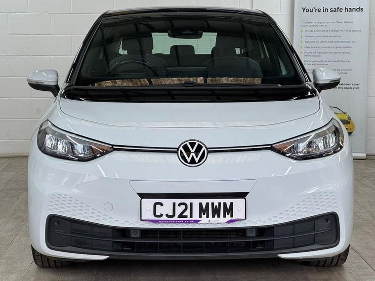This 2021 Volkswagen ID.3 Pro Performance Life is an excellent one-owner example, combining modern electric performance with everyday practicality. Powered by a 62 kWh battery, the ID.3 offers a smooth, refined, and near-silent driving experience, with an official range of up to 260 miles (WLTP) when new. The Life trim is tailored for comfort and usability, making it ideal for both city commutes and longer journeys. Performance is brisk the ID.3 accelerates from 060 mph in just 7.3 seconds, delivering instant torque and a responsive drive. Charging is simple and flexible: a full home charge (7 kW wall box) takes around 9 hours 30 minutes, while rapid charging can restore the battery from 080% in as little as 37 minutes. With its impressive efficiency, refined interior, and strong performance, this ID.3 Pro Performance Life represents an excellent opportunity to experience the future of electric driving in a stylish and practical package. This ID3 Comes With Full VW Maintenance Service History With Its Last Visit On 14.07.25 At 40632 Miles. Additional Spec Includes Comfort Pack With Heated Seats and Heated Steering For Those Cold Winter Months Approaching.