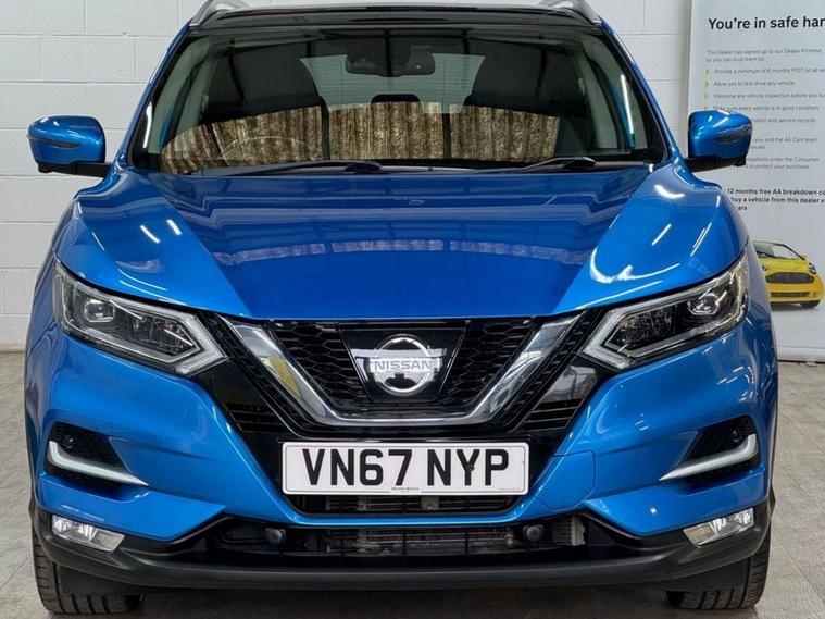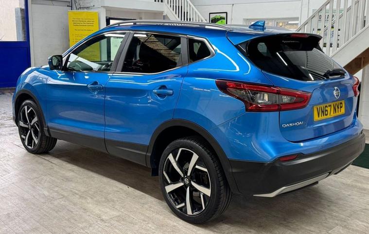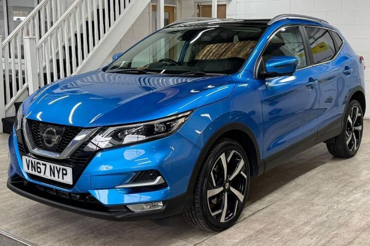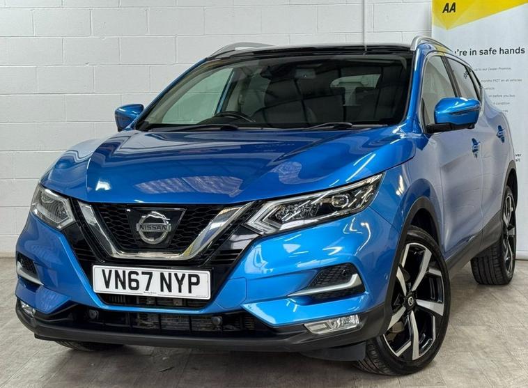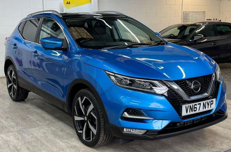 Very Nice Looking High Spec Well Maintained Nissan Qashqai Tekna Presented In Most Stunning Vivid Blue Contrasted With Full Black Leather Interior. This Qashqai Comes With Full Main Dealer Service History With Most Recent Service Carried Out By Us. Great Spec SUV With Heated Seats, Panoramic Glass Roof, 360 Cameras, Park Assist, Bose Sound System, Electric Folding Mirrors, Sat Nav and Cruise Control.