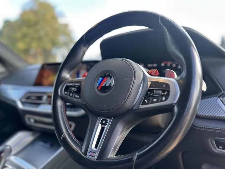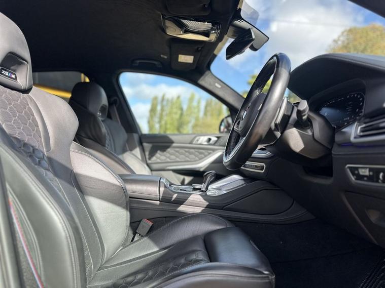 Features: DAB Tuner enables digital radio reception, Favourite buttons, USB connection, USB type A 1.5A in cupholder, USB Type C 3A in centre armrest, Automatic tailgate with separately opening top hinged section, BMW gesture control, Stop / start button, Alarm system, Closing system with central locking, Comfort access system without smart opener and electric lower tailgate, Driver and front passenger door centre lock switch, Locking wheel bolts, Vehicle key, 3 rear headrests, 3 seat bench in 2nd row, 40:20:40 split folding rear seats, Child seat ISOFIX attachment with rear outer seats includes top tether, Driver + front passenger lumbar support, Driver and front passenger seat heating, M Electric front sport seats with memory function, Seat back with flap pocket, Single front passenger seat, BMW Individual high gloss shadow line exterior trim, BMW Individual high gloss shadow line with extended contents, Body colour bumpers, Body colour door handles, Front and rear bumper system, Front and rear door sill strips, High gloss black shadow line roof rails, M Sport exhaust system, Rear side wing doors, X5 M competition badging on tailgate high gloss black right finished, M Adaptive suspension pro, 12V - Power sockets with 2x centre console and 1x luggage compartment, Electrical steering column with adjustable height and length with activation and control on the steering column, Front and rear cupholders x 2, Front and rear door pockets, Front and rear side armrest integrated into door trim, Gear selector lever and operation, Leather dashboard, Light inside glove compartment, Lockable glove compartment, Luggage compartment floor panel with integral storage tray, M sport leather steering wheel, Multifunction controls for leather steering wheel, Multifunctional hooks, Securing rings in luggage compartment, Storage bins on all doors, Storage tray and compartment with cover in centre console, Toolkit located in luggage compartment, Front and rear electric windows with open and close fingertip control, anti trap facility and comfort closing, Heated windscreen washer jets, Rain sensor with automatic headlight activation and windscreen wiper control, Rear wiper, Sun protection glazing, Variable intermittent rear wash / wipe, Anti-lock braking system (ABS), Automatic Stability Control (ASC), Brake drying, Brake energy regeneration, Brake fade compensation, Braking pre-tensioning, Cornering brake control (CBC), DSC - Dynamic Stability Control, Dynamic brake control, Dynamic Traction Control - DTC, Electromechanical parking brake with automatic drive away release and auto hold function, Electronic brake force distribution, Front and rear brake discs with interior ventilation, Hill start assistant, Integrated brake system, BMW M TwinPower Turbo 8 cylinder petrol engine, Double VANOS, High precision injection, M xDrive system, Petrol Particulate Filter, Safety battery terminal clamp, Turbocharger with Valvetronic,