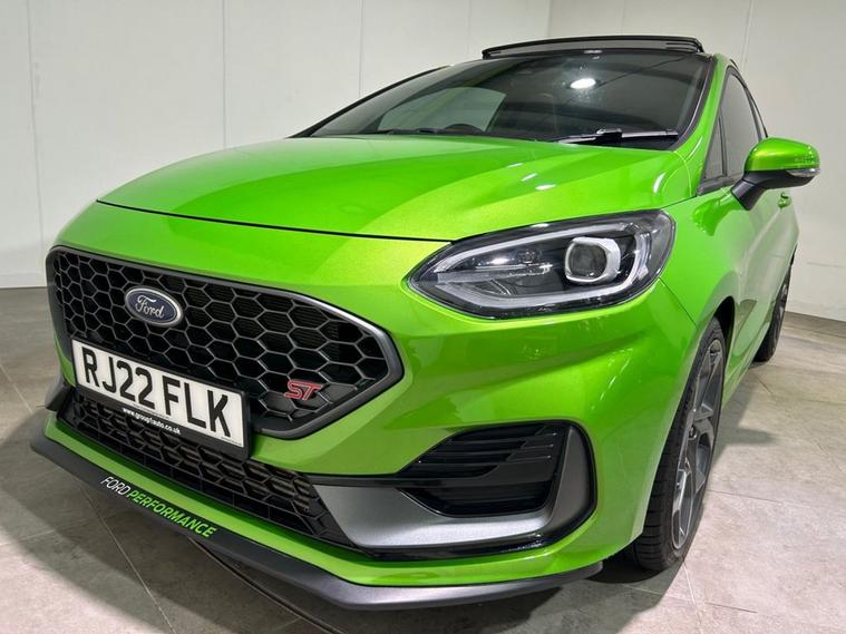 Stunning, high specification Ford Fiesta ST-3 finished in the desirable Mean Green with Electric panoramic sunroof, Bang & Olufsen sound system, Winter pack (Heated front seats & steering wheel), Satellite navigation, Rear view camera, Bluetooth audio and much more. Cared for and maintained to a very high standard with a 3 stamp Ford main agent service history. Last serviced at Ford, Wokingham on the 06-06-25 at a mileage of 11, 522. Full set of premium branded Michelin tyres gives an indication of the level of care and maintenance afforded to this performance Ford. This Ford Fiesta St has been independently inspected by the AA for your added peace of mind. We have uploaded a full Hd walkaround video to show the quality both inside and out of his cherished Fiesta St. Visit dealer's website to reserve this car and apply for finance.