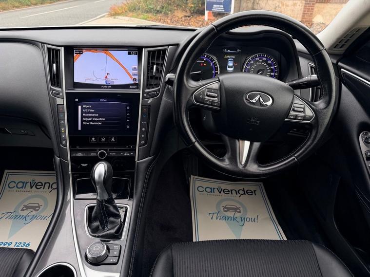 Carvender presents an exceptional opportunity with its remarkably low mileage 2016 Infiniti Q50 2.2d SE 4dr. Benefitting from only two previous owners and a clear vehicle history check, this Q50 boasts a full service history, with its last service completed on 09 October 2025 at 31, 610 miles. You can drive away with confidence, as a 12 month MOT will be provided on purchase, and the vehicle also comes with a 3 month warranty for added peace of mind. The SE trim level offers a range of useful features designed to enhance your driving experience. These include a rear view camera and rear parking sensors, making manoeuvring easier and safer. Stay connected on the go with Bluetooth for mobile connectivity and enjoy your favourite music through Bluetooth audio streaming. Automatic headlights ensure optimal visibility in varying light conditions. Furthermore, this Infiniti Q50 d SE sits in a low insurance group, indicating that running costs are likely to be more affordable compared to similar vehicles. Contact us today to schedule a test drive or visit our website for home delivery within 14 days money back guaranty.