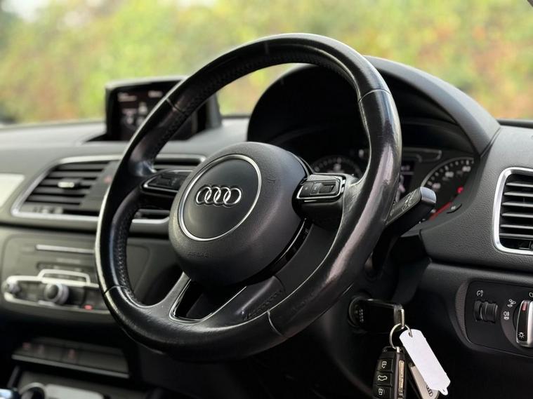 Here for sale at Leigh Cars Ltd we are delighted to present this impressive ULEZ free Audi Q3 2.0 TDi Quattro Sport 150bhp 7 speed automatic SUV finished in glacier white metallic paint. This fine example comes with a good service history - 7 services. No expense has been spared in the maintenance department on this fine example. As part of our thorough pre sale preparations this vehicle comes with a full inspection and major £1000 engine service including new cam belt and water pump! This superb example comes with the upgraded 18 10 spoke alloys, which make it look the part! It also comes with some great standard specification including black cloth interior, satellite navigation, bluetooth, ice cold dual zone climate controlled air conditioning, auto lights + wipers, DAB radio, remote central locking, 2 Keys + much more. This great value 4x4 SUV automatic would be ideal for any growing family with its impressive specification, practicality and stylish looks with a sporty powerful smooth drive alongside the impressive Audi build quality + reliability. Road tax costs are only £195 per year with average fuel economy returns of 56.5mpg and is ULEZ charge free. This car really needs to be driven to understand what it has to offer so book in your click & collect or test drive appointment today. ** Viewing Strictly By Appointment Only - Please visit our website for more details - We are open 7 days a week - Nationwide delivery available - 14 day money back guarantee subject to T&Cs** As we are an AA accredited dealer, with any purchase through Leigh Cars Ltd, you will also receive 12 months free breakdown assistance. We also offer AA warranty packages for up to 2 years subject to terms and conditions. We offer very competitive low rate finance packages - Why not check out our online deal builder on our website where you can tailor a personal quote to yourself including part exchange and finance options. We offer part exchange on all of our vehicles and nationwide delivery and we also offer home or work appointment services subject to conditions. We are rated 5 stars by our customer reviews, check us out on Autotrader, Google, Car Gurus or Facebook (@leighcarsltd) to see what our customers have to say about the quality service we provide. We are very proud to be a Car Gurus top rated dealer 2018, 2019, 2020, 2021, 2022 & 2023 and Autotrader highly rated dealer 2019, 2020, 2022 and 2023.