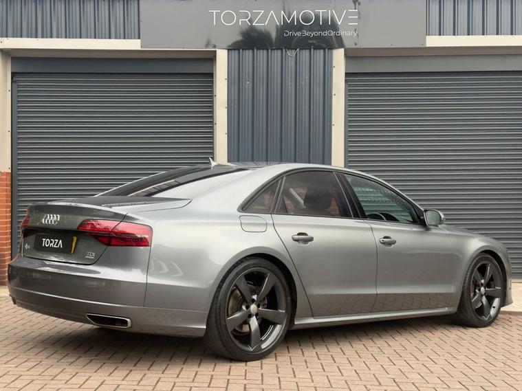 Experience the pinnacle of executive motoring with this 2017 Audi A8 Black Edition V6 TDI - a flagship saloon that blends timeless design, advanced innovation and effortless power. With just 89, 500 miles and only two former keepers, this beautifully maintained example embodies sophistication and comfort in every detail. From its commanding presence on the road to its meticulously crafted interior, this A8 offers a truly first-class driving experience. The powerful and refined V6 TDI engine delivers smooth, confident performance, while Quattro all-wheel drive ensures composed handling and exceptional grip in all conditions. Inside, the cabin showcases Audis renowned attention to detail and craftsmanship, enhanced by a comprehensive specification designed to make every journey memorable: Soft Close Doors BOSE Surround Sound - immersive, concert-level audio clarity. 360 Camera System with Top View - complete visibility for effortless manoeuvring. Massage, Heated and Memory Seats - tailored comfort for both driver and passengers. Head-Up Display - essential driving data projected directly into your line of sight. Quilted Leather Upholstery - exquisite craftsmanship and a timeless sense of luxury. Electrically Operated Tailgate - convenience at the touch of a button. Keyless Entry & Start/Stop - seamless access and effortless ignition. Adaptive Cruise Control - intelligent driver assistance for relaxed long-distance travel. This A8 Black Edition epitomises understated luxury, combining advanced technology with elegant design and exceptional build quality. Perfectly suited to both business and leisure, it offers a level of comfort and refinement few cars can match. Torza Cars - Buy with Confidence Purchasing from Torza Cars provides complete peace of mind. We are FCA-regulated, AA-approved and 5-star reviewed, trusted for our professionalism and carefully curated vehicle selection. Every car is supplied with a 3-month comprehensive warranty (extendable up to 36 months) and 12 months AA breakdown cover as standard, ensuring your ownership experience is as effortless and reassuring as the car itself.