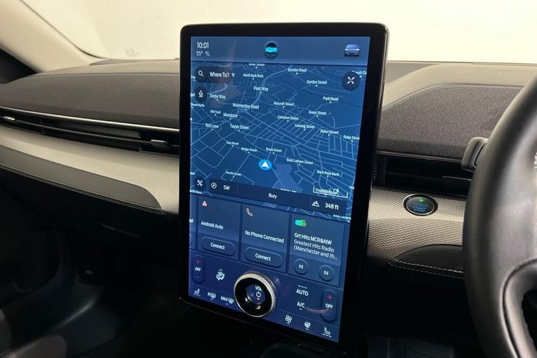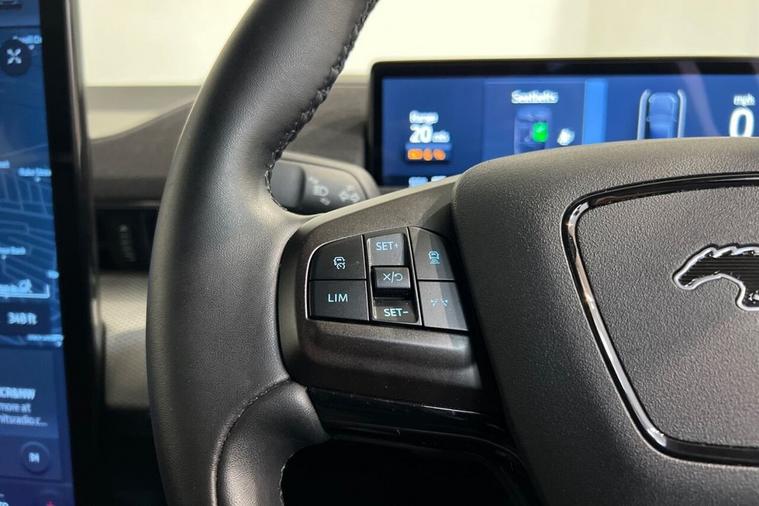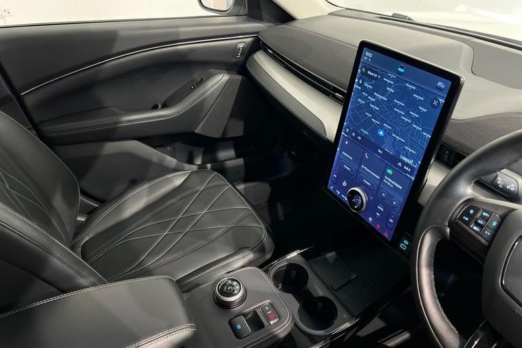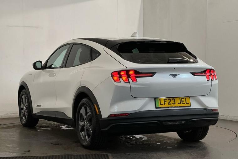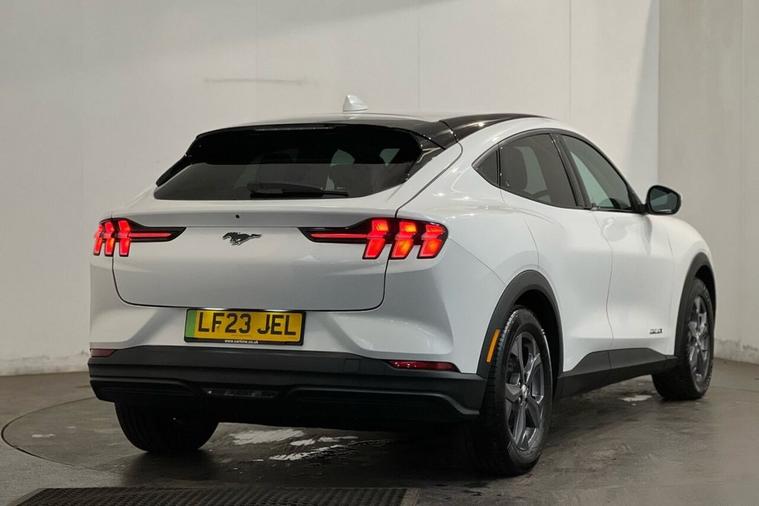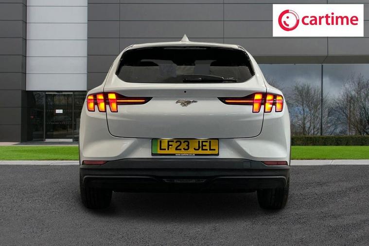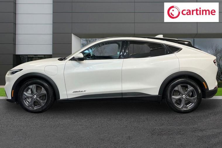 This 2023 Ford Mustang Mach E Extended Range is a single owner electric vehicle with a clear vehicle history check. It boasts a substantial 99 kWh battery, offering an impressive maximum range of 379 miles from new. This model features the Next Generation SYNC system with Connected Navigation and Natural Voice Search, a heated steering wheel for added comfort, and LED reflector headlamps for excellent visibility. Convenience is enhanced with the E-Latch Keyless Entry System, including B-Pillar Keypad Access, and Adaptive Cruise Control with Stop and Go and Lane-Centering for effortless journeys. The extended range capability of this Mustang Mach E, with a maximum of 379 miles, sets it apart from many other electric vehicles. Charging is flexible, with a full charge at home on a 7kW charger taking approximately 14 hours and 36 minutes, while rapid public charging can take you from empty to 80% in just 51 minutes. These charging times and the extensive range highlight the practicality and advanced technology of this electric Ford, making it a compelling choice for those seeking an efficient and feature-rich driving experience.