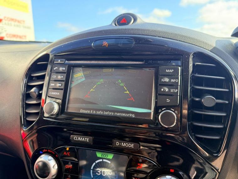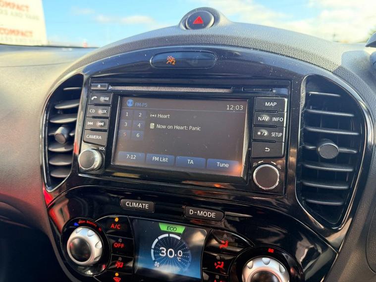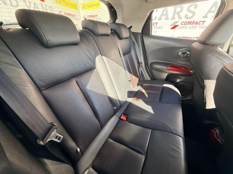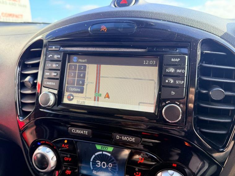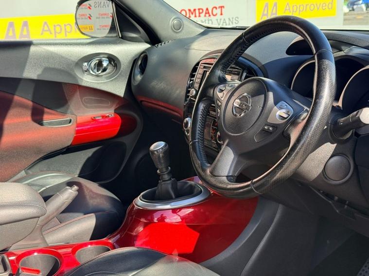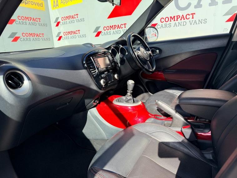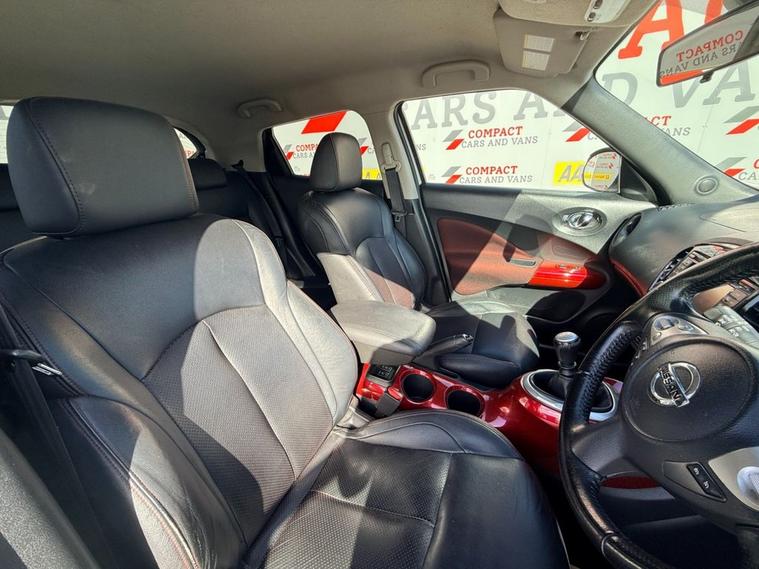 Turn heads with this bold and sporty 2014 Nissan Juke 1.6 DIG-T Tekna a compact SUV that blends turbocharged performance with standout style. Powered by a punchy 190 PS petrol engine and paired with a slick 6-speed manual gearbox, it delivers an engaging drive thats perfect for urban adventures and weekend getaways alike. The Euro 5-compliant engine offers a great balance of power and efficiency, while the Jukes distinctive design ensures you wont go unnoticed. Inside, the Tekna trim spoils you with premium features including full leather upholstery, heated front seats, a colour touchscreen with satellite navigation, and a reversing camera for added convenience. Keyless entry, climate control, and Bluetooth connectivity round out the tech-savvy cabin, making every journey comfortable and connected. With its elevated driving position, sharp handling, and generous equipment list, this Juke is a stylish all-rounder thats ready to impress.