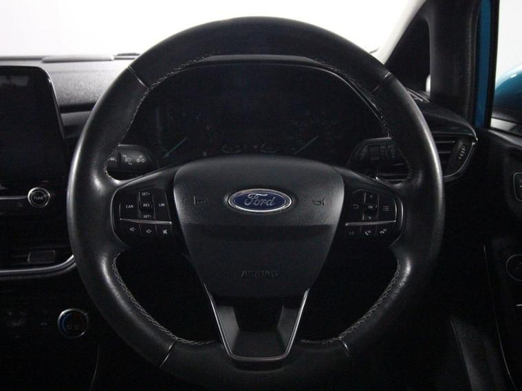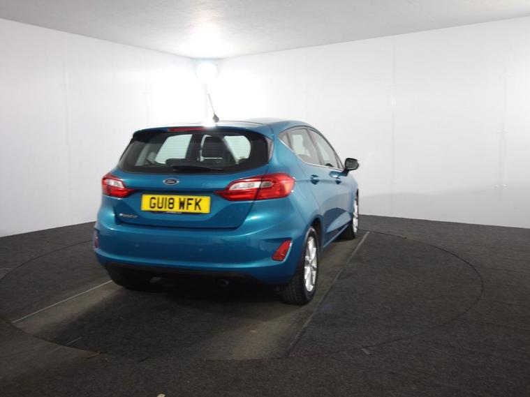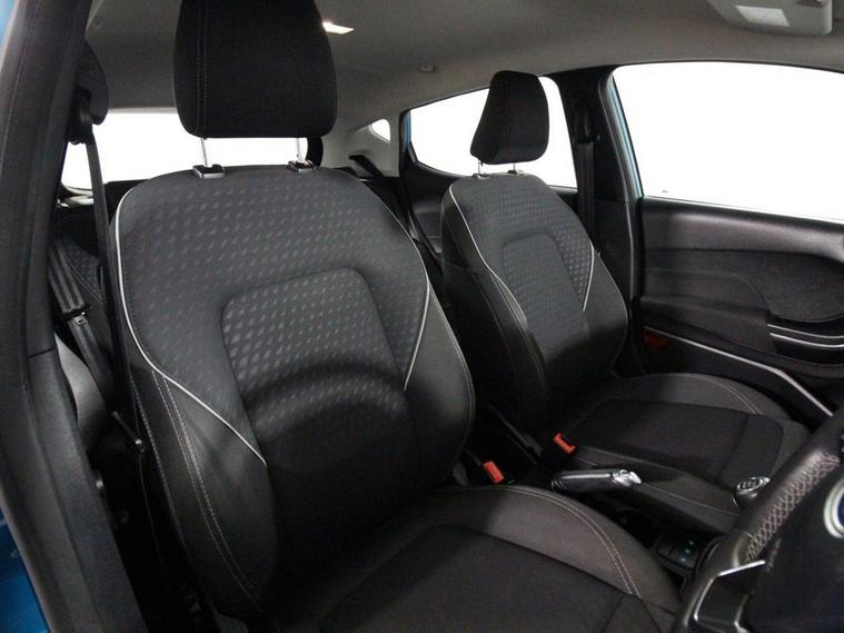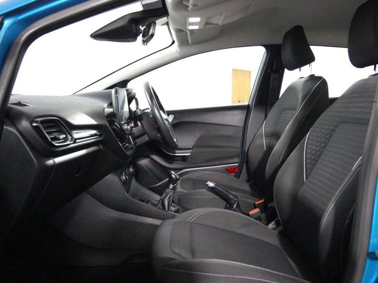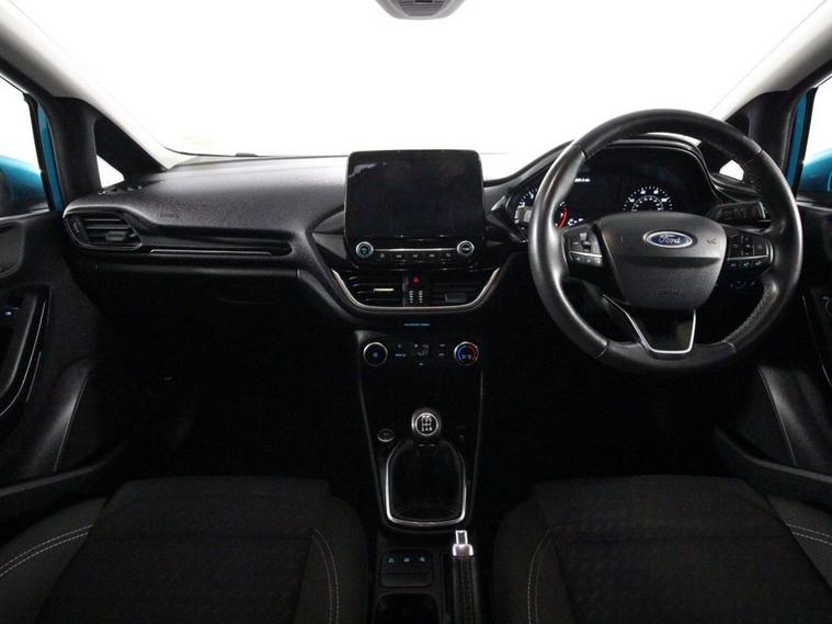 Comprehensive service history with 4 services. Last serviced at 48, 673 miles in March 2025. This 2018 Ford Fiesta 1.1 Ti-VCT Zetec is an efficient and well-equipped hatchback powered by an 85ps Euro 6 petrol engine with manual transmission. It rides on 15-inch 8-spoke alloy wheels and features a chrome upper grille, body-coloured bumpers, door handles, and electrically operated heated door mirrors with integrated side indicators. The exterior includes LED daytime running lights integrated with halogen projector headlights framed by a black bezel, front fog lamps with cornering lights, rear fog lamps, and a body-coloured rear spoiler. Inside, the Zetec trim offers comfort with a 3-spoke leather-trimmed multifunction steering wheel, manual drivers seat height adjustment, front comfort style seats in Dynamo Ebony cloth, and leather-trimmed gearshift knob and handbrake. Technology features include Ford SYNC3 with DAB radio, Apple CarPlay, Android Auto, TPMS, and MyKey programmable driver settings. Convenience is further enhanced by a quickclear heated windscreen, one-touch electric front windows driver side, overhead console with sunglasses holder, illuminated glovebox, and remote central locking with engine immobiliser. Safety is comprehensive with multiple airbags including front, side, and curtain, ABS with electronic brakeforce distribution and emergency brake assist, electronic stability programme with hill start assist, NCAP pack, and Thatcham alarm. Additional practical features include a trip computer, centre console with cupholders and 12V power point, warning triangle storage, and a tyre repair kit.