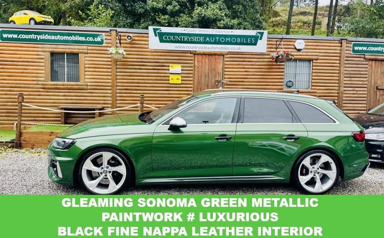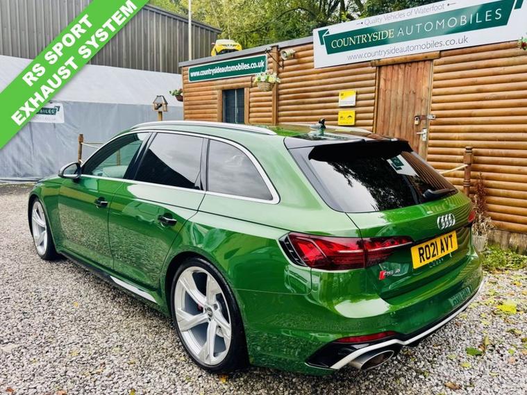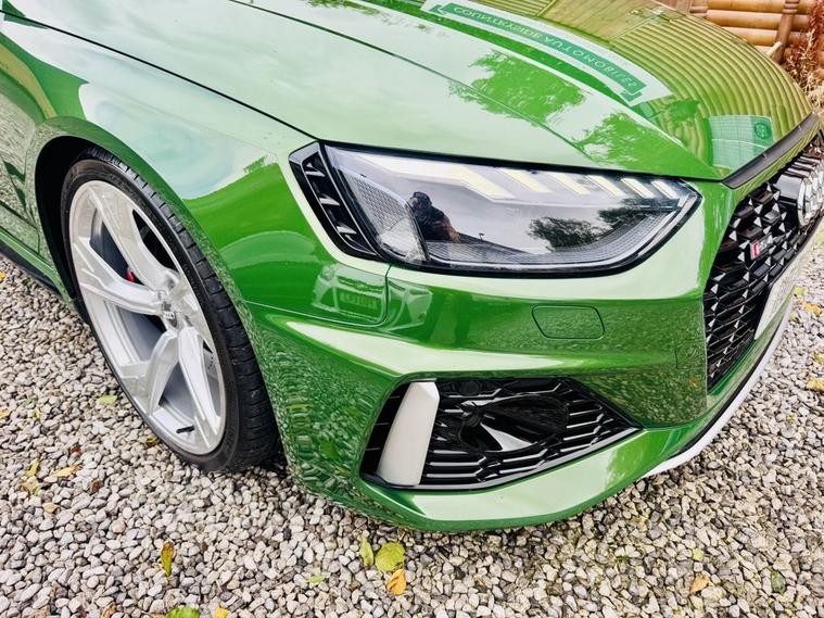 This 2021 Audi RS4 Avant TFSI V6 boasts a full dealership service history, ensuring its provenance is as impressive as its performance. Gleaming Sonoma Green Metallic Paintwork. Powered by a potent 2.9 litre petrol engine, That has had top speed restriction increased to 174mph and featuring a sophisticated four wheel drive system, this Euro 6 compliant model offers exhilarating acceleration, reaching 0-62mph in a mere 4.1 seconds. It comes equipped with the desirable RS Sport Suspension Plus with Dynamic Ride Control, red brake calipers in a high gloss finish with an RS logo at the front, and the comprehensive Driver Assistance Pack Tour. Further enhancing its practicality and comfort are the Storage and Luggage Compartment Package and a rear view camera with parking assistance. A 12 month warranty provides added peace of mind. The Audi RS4 Avant TFSI V6 stands out from other vehicles in its class thanks to its exceptional engineering and thoughtful features. The RS Sport Suspension Plus with Dynamic Ride Control actively adapts to driving conditions, offering a superior blend of agility and comfort. The inclusion of the Driver Assistance Pack Tour signifies advanced safety and convenience technologies, making every journey more relaxed. Combined with its rapid acceleration and robust four wheel drive, this RS4 Avant delivers a driving experience that is both thrilling and refined, all backed by a full dealership service history and a 12 month warranty.