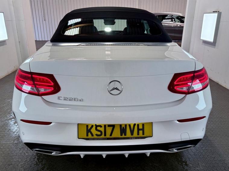 **THIS VEHICLE MAY BE AT OUR 150-CAR STORAGE FACILITY. PLEASE CALL AHEAD TO ARRANGE VIEWING AT OUR WINCHESTER SALES SITE** MOT September 2026. Serviced at 10k, 23k and 28k miles. A well looked after Mercedes-Benz C220d AMG soft top convertible finished in Diamond White with Titanium grey 19 inch alloy wheels. Packed with features such as a Reversing camera, PARKTRONIC parking assist, airscarf neck level heating system, heated front seats, dual zone climate control, heated front seats and more. Powered by a 2.1 litre diesel engine and a manual gearbox.
