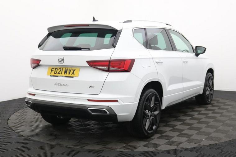 Henson Car Store presents the SEAT ATECA 2.0 TDI FR Sport SUV 5dr Diesel Manual Euro 6 (s/s) finished in White, this car comes with service history and is VAT qualifying. This 2021 SEAT Ateca 2.0 TDI FR Sport is a striking and well-equipped SUV that blends dynamic styling with practicality and strong diesel efficiency. Finished in White and featuring SEATs signature sporty FR design cues, this model stands out with its sharp lines, bold front grille, and stylish 19-inch alloy wheels. Under the bonnet, the powerful and efficient 2.0-litre TDI diesel engine is paired with a precise 6-speed manual gearbox, delivering smooth performance, excellent fuel economy, and low emissions in line with Euro 6 standardsmaking it ULEZ-compliant and ideal for both motorway cruising and urban driving. Inside, the FR Sport trim offers a premium and sporty feel with part-leather upholstery, heated front sports seats, a digital cockpit, and ambient interior lighting. The cabin is spacious and well laid out, with a driver-focused design and high-quality materials throughout. The large touchscreen infotainment system features satellite navigation, DAB radio, Bluetooth connectivity, and full smartphone integration via Apple CarPlay and Android Auto. Dual-zone climate control, keyless entry and start, front and rear parking sensors with a rear-view camera, and adaptive cruise control all add to the impressive list of standard features, making every journey more comfortable and convenient. Practicality is another strong suit, with a generous boot space, split-folding rear seats, and plenty of room for passengers in both the front and rear. The Ateca also offers confident road handling and responsive steering, making it one of the more engaging cars to drive in its class. Safety is well covered too, with multiple airbags, lane assist, traffic sign recognition, and autonomous emergency braking all contributing to its excellent safety credentials.