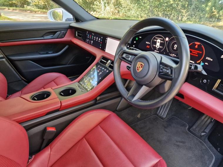This Taycan 4S Performance plus battery is a 1 owner car and has just had a service including brake fluid at Porsche. THIS VEHICLE IS VAT QUALIFYING. Looks great in white with red leather interior and a lovely spec to go with it including, Park assist including reversing cam, Model designation on doors in red, 20 Taycan turbo aero alloy wheels, Porsche logo in glass look integrated in, Porsche electric sport sound, LED headlights including Porsche dynamic, Floor mats, Red brake calipers, High gloss silver side window trims, 150 kW On board booster, Fixed panoramic roof, BOSE surround sound system, Passenger display, Electrically folding exterior mirrors, Cruise control including adaptive speed, Black accent package, Door sill guards in brushed aluminium in, Bordeaux Red seat belts, Sideskirts in black, Wheel centres with monochrome Porsche, Steering Wheel Heating (i.c.w. Leather I, 8 way electric comfort front seats, Light strip, Front seat heating, Ambient lighting, Smooth finish two-tone leather - Black/red, Head up Display, Automatically dimming exterior and interior mirrors, Storage Package, DAB, Apple car play, Android auto, Cruise control, Ambient lighting and Enhanced bluetooth. This car is in beautiful condition both inside and out and must be seen to be appreciated. Speak to our sales team Directly or WhatsApp Message on 01992692459 for any enquiries or to discuss part exchange valuations. Xclusive Xports are a used car dealership based in Bayford Hertfordshire, SG13 8PZ. Specialising in UK sales as well as export of vehicles, upon request. Established since 2008, with a wide range of used vehicles to suit all budgets and lifestyles, we are sure to have the right car for you. VIEWINGS ONLY BY APPOINTMENT 7 DAYS A WEEK. As an APPROVED AA CAR DEALERSHIP all vehicles are HPI CHECKED & PROVIDED WITH A 12 MONTHS FREE AA BREAKDOWN COVER. Visit our website dealer's website for GREAT FINANCE OPTIONS & TO APPLY ONLINE. Delivery is available throughout the UK, upon request. In addition, we provide a WARRANTY for total peace of mind which can be extended. PART EXCHANGE WELCOME. Please contact us for further information, and check out our 5 STAR REVIEWS. BUY IN CONFIDENCE