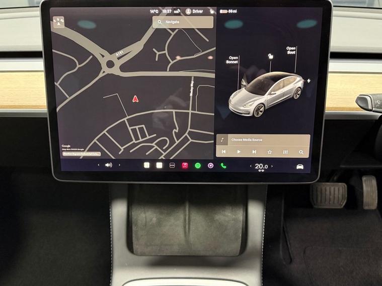 AJC Car Sales presents the TESLA Model 3 Standard Range Plus Saloon 4dr Electric Auto RWD (241 bhp) finished in a Grey Metallic with 18 EV Style Wheels and Two Key Cards. Experience cutting-edge electric performance with this 2021 Tesla Model 3 Standard Range Plus. A sleek and modern saloon, this rear-wheel drive (RWD) model delivers an impressive 241 bhp, combining efficiency, technology, and style in a premium all-electric package. The Model 3s minimalist design is both elegant and functional, featuring a streamlined silhouette, flush door handles, and 18-inch Aero wheels. Inside, the cabin is defined by a clean, high-tech aesthetic, centred around a 15-inch touchscreen that controls virtually every aspect of the vehicle from navigation to climate control and entertainment. Premium materials and an expansive glass roof create an open, airy feel, while heated front seats and a premium audio system enhance driver and passenger comfort. Powered by a single electric motor, the Model 3 Standard Range Plus accelerates from 060 mph in just 5.3 seconds, delivering smooth and responsive performance. With a WLTP-estimated range of up to 278 miles, it offers ample distance for both daily commutes and longer journeys. Teslas regenerative braking system, combined with over-the-air software updates and access to the Tesla Supercharger network, ensures a seamless and future-ready ownership experience. Safety is paramount, with the Model 3 achieving a 5-star Euro NCAP rating, supported by a suite of advanced driver-assistance features including, collision avoidance, emergency braking, and lane departure warning. Whether youre seeking an environmentally friendly daily driver or a stylish, tech-forward executive saloon, the 2021 Tesla Model 3 Standard Range Plus delivers outstanding performance, low running costs, and an uncompromised electric driving experience.