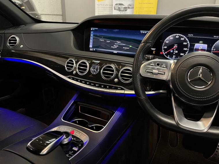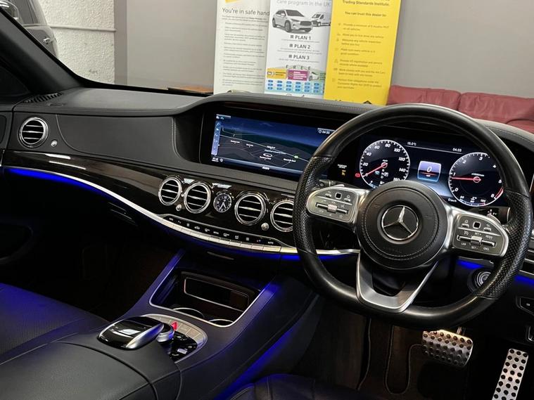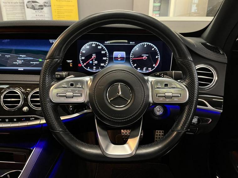 A perfectly maintained, low mileage, long wheelbase 2018 Mercedes S350d L AMG Line Executive with just 34, 000 miles and full Mercedes service history in Obsidian Black metallic trimmed in Black leather with high gloss Black Poplar veneers. Exceptionally comfortable and spacious long wheel base version with a superb specification including keyless entry and ignition, electric opening panoramic glass pan roof with dual electric sun blinds, widescreen COMAND Online satellite navigation with touchpad controls, heated electric front seats with triple memory and the Executive Equipment Line package which adds heated and cooled electric reclining rear seats with comfort cushion head restraints, electrically operated blinds for the rear and side windows and Thermotronic luxury digital rear climate controls. Other equipment highlights include configurable 64-colour ambient lighting, Air-Balance Package which subtly fragrances the interior with your choice of scents via a perfume bottle ionizer in the glovebox, traffic sign recognition to keep you aware of relevant speed limits, automatic headlights with LED Intelligent Light System, Bluetooth and smartphone connectivity via Apple CarPlay and Android Auto, wireless phone charging in the centre console, DAB radio, Mercedes-Benz illuminated sill plates, 360-degree parking sensors with reversing camera and Active Parking Assist, electric powered boot and more. Great looking with its AMG body styling, dark rear privacy glass and 19 inch AMG alloy wheels. An excellent low mileage example supplied with complete book pack in Mercedes wallet, two keys, just 34, 000 miles and full Mercedes main dealer service history all properly recorded on the Mercedes digital system. This car comes with six months Momentum Plan 3 Pro warranty so that you can drive away with total confidence knowing that you are benefiting from what is probably the best warranty cover available in the UK today. Amver Select are proud to have been awarded Auto Traders Highly Rated status for 2025, an honour that we have received every year since its introduction in 2018. In our current premises for nearly two decades, we are conveniently located between Glasgow and Edinburgh and are open from 10:00am to 6:00pm Monday to Friday. We have committed to AA Cars Standards, basically the AAs Commandments of Gold Standard customer service. All cars are provided with a minimum 6 months MOT, 12 months AA basic breakdown cover and other exclusive AA member benefits. Finance available, subject to approval.