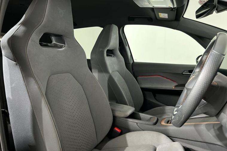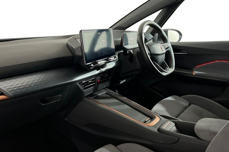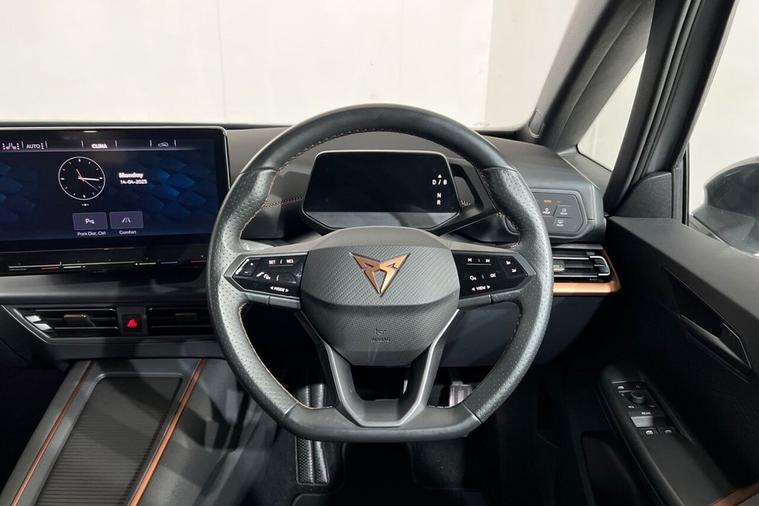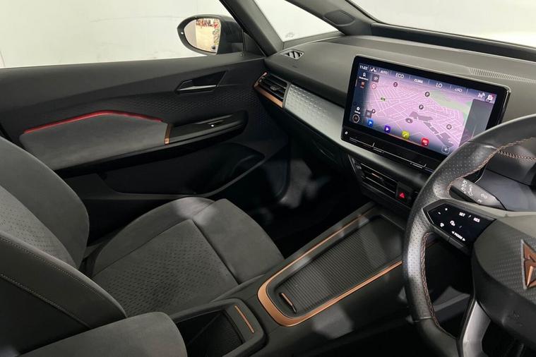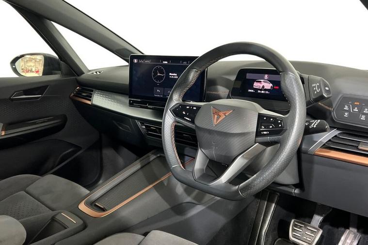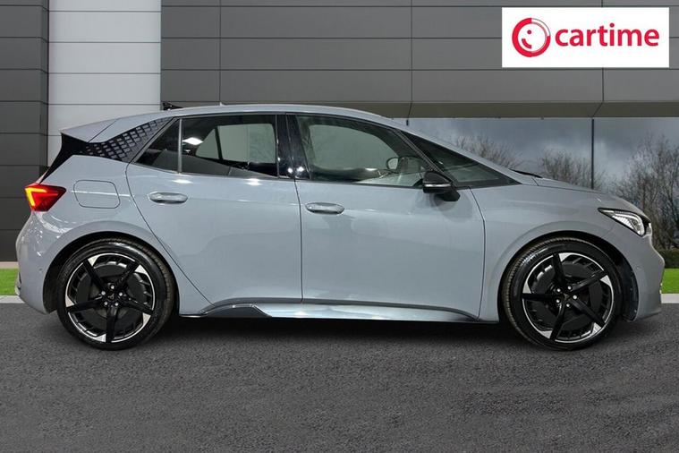 The Cupra Born V3 features a sleek and sporty design, typical of Cupra vehicles. It carries some design cues from its SEAT counterpart, the SEAT el-Born, but with more performance-oriented elements unique to Cupra. It is powered by an all-electric drivetrain, with the battery pack integrated into the vehicle's floor, providing a low centre of gravity for improved handling. The electric motor(s) drive the front or all wheels, depending on the configuration. The Cupra Born was the brands first ever take on a fully electric hatchback, having shared its production amongst the Volkswagen ID.3 and adding several more sporty tweaks to help separate the two apart. Our example comes presented in Vapor Grey and is paired with 20-Inch Hurricane Alloy Wheels. Features on this Cupra Born include; Heated Multifunction Steering Wheel, Heated Front Seats, 5.3-Inch Digital Cockpit, 12-Inch Central Infotainment System, Wireless Full Link Smartphone Integration, Front and Rear Parking Sensors, Voice Assistant, Full LED Headlights, Multi Coloured Interior Ambient Lighting and much more. With modern technology and features, the Cupra Born aims to deliver a dynamic driving experience while providing the benefits of electric mobility.