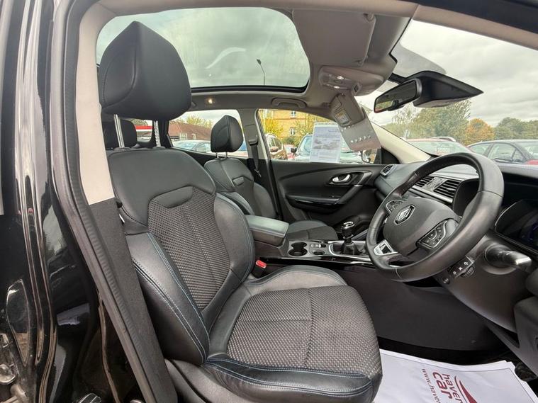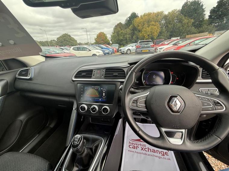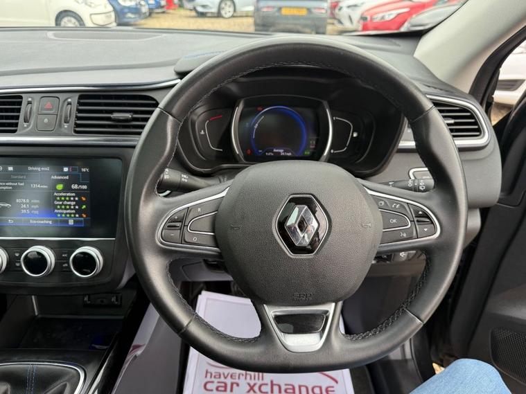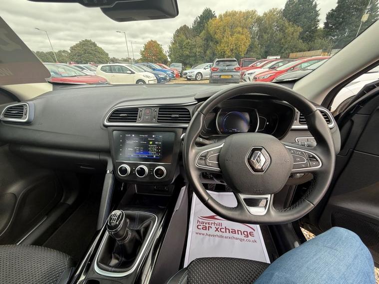 12 MONTHS MOT+7 INCH TOUCHSCREEN SATELLITE NAVIGATION SYSTEM+APPLE CARPLAY/ANDROID+AUTOMATIC CLIMATE CONTROL AIR-CONDITIONING+AUTOMATIC HEADLIGHT ACTIVATION AND WINDSCREEN WIPERS+FRONT AND REAR PARKING ASSISTANCE WITH PARKING CAMERA+PANORAMIC GLASS ROOF+METALLIC DIAMOND BLACK PAINT+19 INCH ALLOY WHEELS. At Haverhill Car Xchange we would like to offer you our Renault Kadjar TCe S Edition SUV which has been finished in a metallic Diamond Black paint Black Cloth upholstery with Blue Top Stitching. Excellent Specification Includes a 7 Inch R-Link 2 Multimedia System which features Satellite Navigation- DAB Radio-Apple CarPlay and Android Auto, Two Rear USB Plugs, Accessory Power Socket, Lane Departure Warning, Automatic Dual Zone Climate Control Air-Conditioning, Cruise Control with Speed Limiter, ECO Mode, Gear Change Indication Light, Front and Rear Electric Windows, Body Coloured Bumpers/Door Handles/Door Mirrors and Rear Roof Spoiler, Automatic Headlight Activation, LED Daytime Running Lights, LED Front Fog Lights with Cornering Function, LED Tail Lights, Automatic Windscreen Wipers, Auto Dimming-Rear View Mirror, Front and Rear Parking Assistance with Parking Camera, Leather Multifunction Steering Wheel, Heated Rear Windscreen, Extra Tinted Window-Rear and Tailgate, Electronic Parking Break, 19 Inch Alloy Wheels, Power Steering, Hill Start Assist, ABS Breaking System, Alarm, Immobiliser, Remote Central Locking and ISOFIX Anchorage Points for Child Seats.